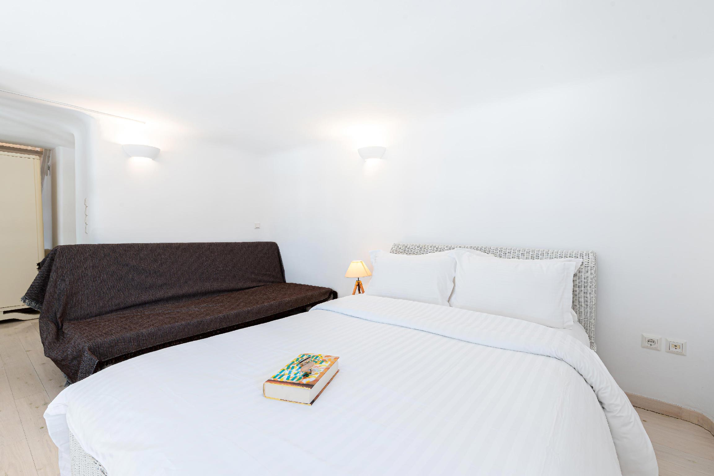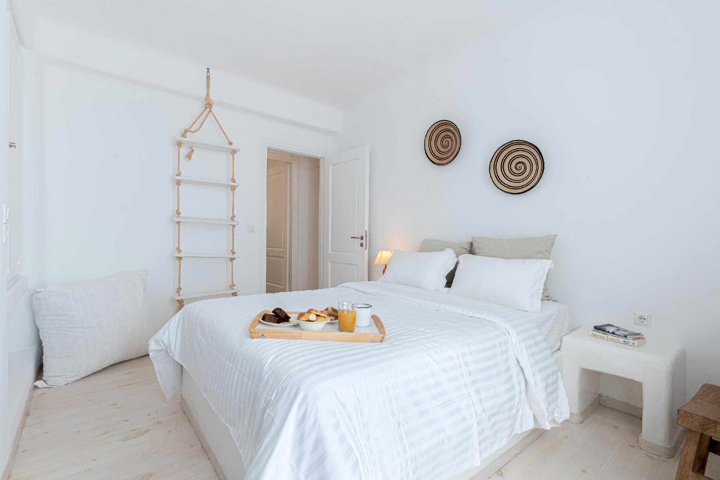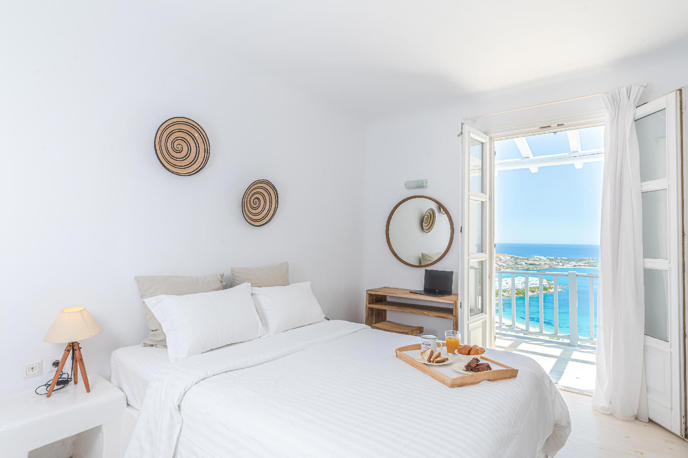 Simplicity and elegance are the elements that echo everywhere while Mykonos’ dazzling palette is setting the tone inside out in each house with white dominating the scene while the sugar-sweet pastels are adding their special touch. Villa Leona is without a single doubt the perfect place to kick-back and relax in comfort while indulging yourselves to the pleasures of Mykonos.