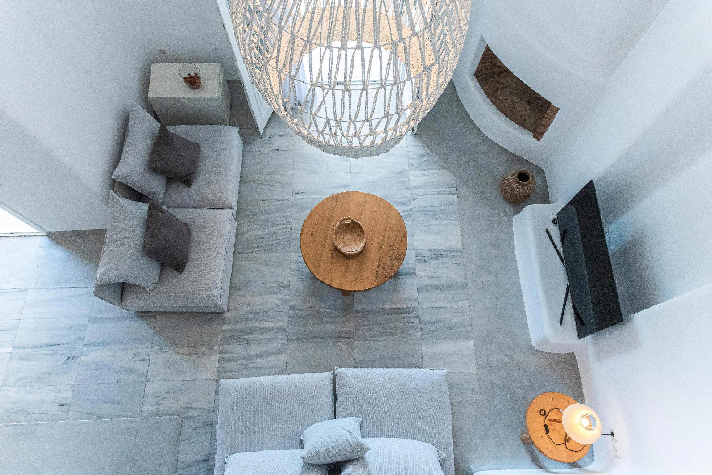 And down bellow on a lower level dominates the shared swimming pool that is accessed via handcrafted stone stairways from all houses.