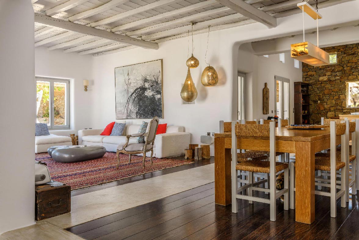 Discovering one by one all the interesting, elegant, and tastefully made corners of this modern, luxurious, and brand-new Mykonian house.