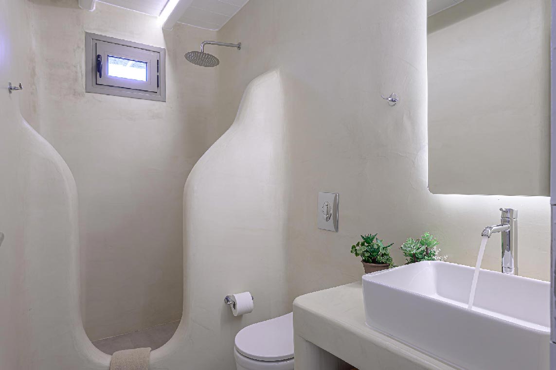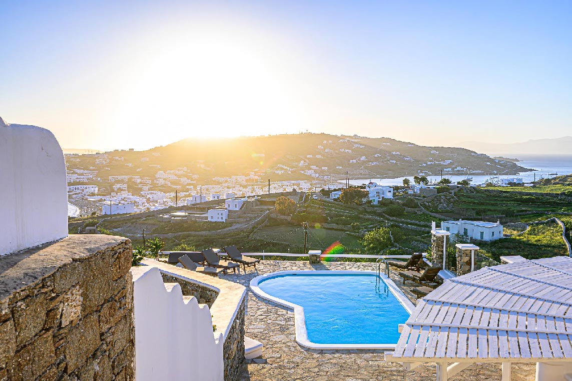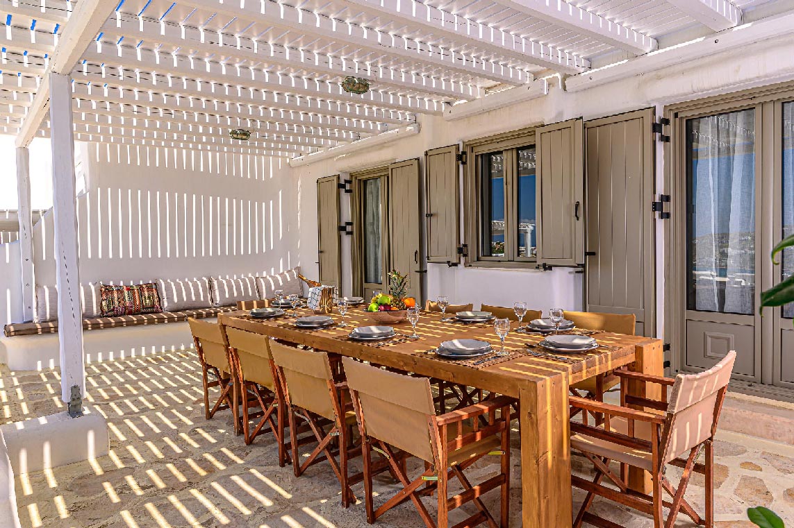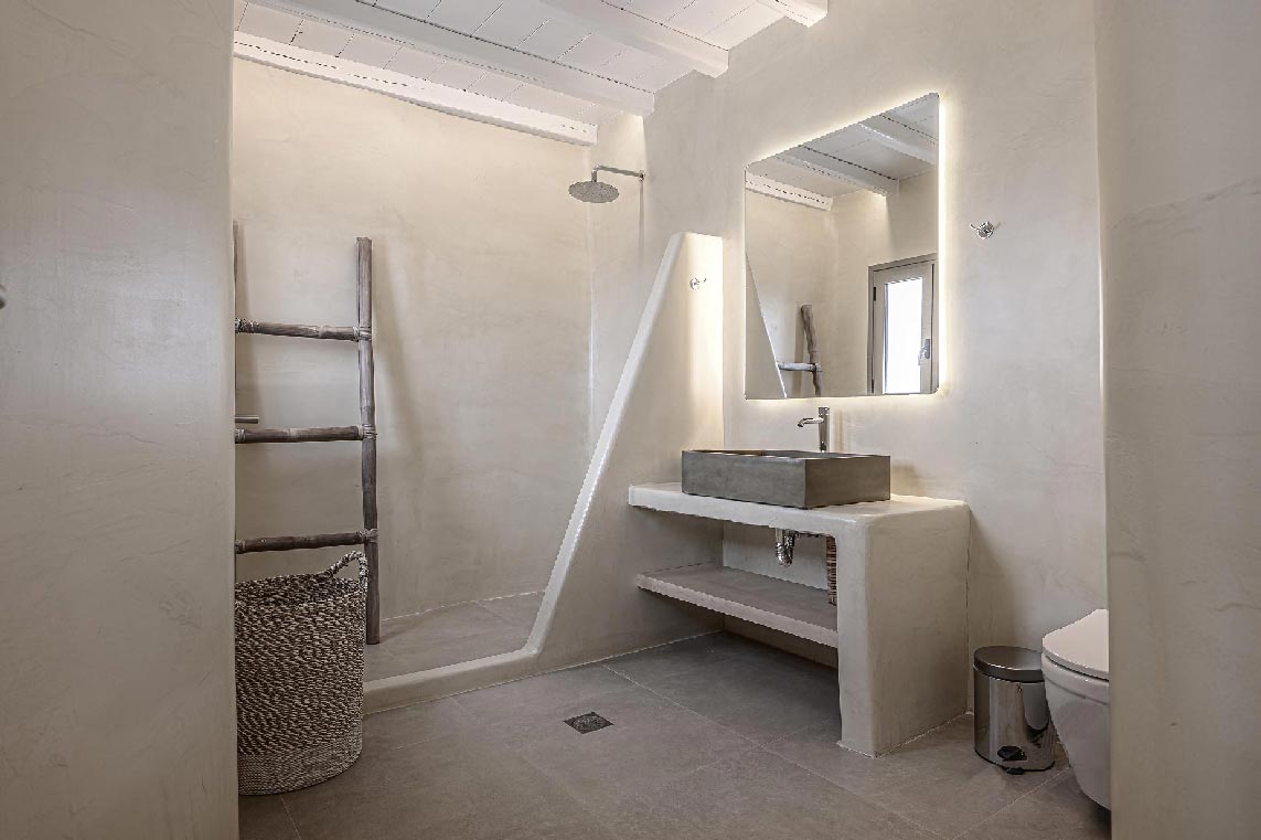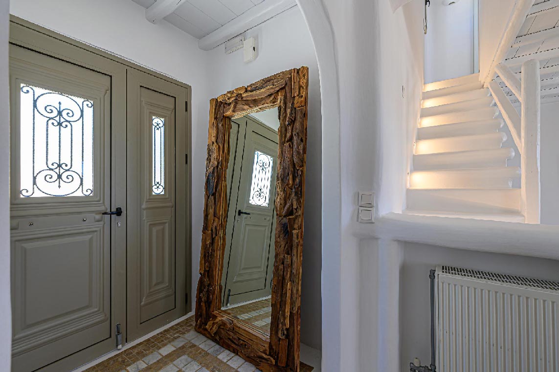 A hillside hideaway in a secluded nearly rural area although close to the town, where you can relax after a long day at the magnificent beaches of the island or a long night in the vivid nightlife. Carved on a hill, 200m from the coast, in an extraordinary setting framed by beautiful countryside, it blends uniquely in the rocky topography of its hillside, prime and unspoiled, setting. Traditional interiors, all in white, perched on a hillside with breath-taking, panoramic views over the Aegean Sea boasting a large open plan living area indoors and outdoors and offering privacy and seclusion in a very idyllic spot.