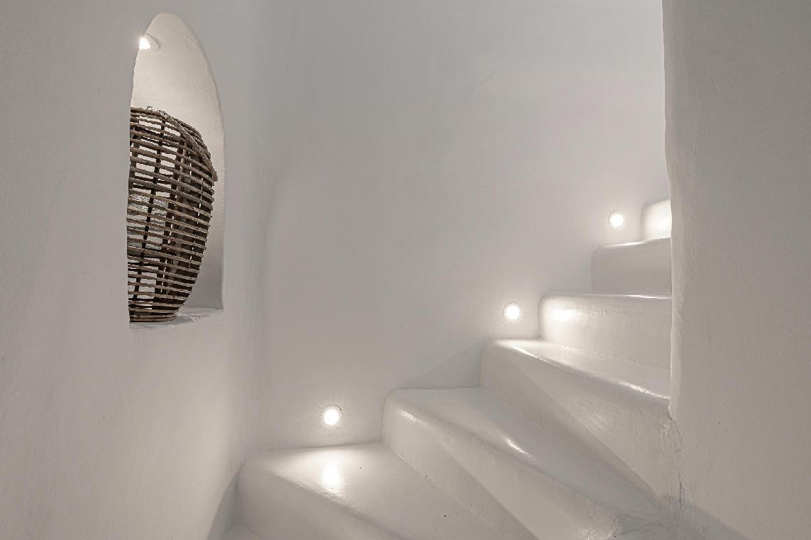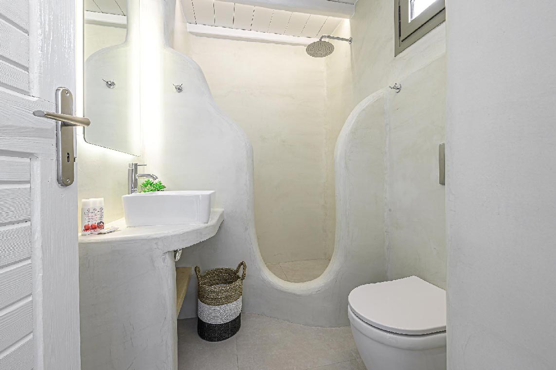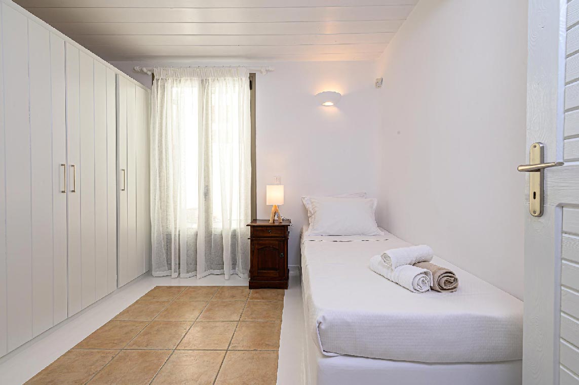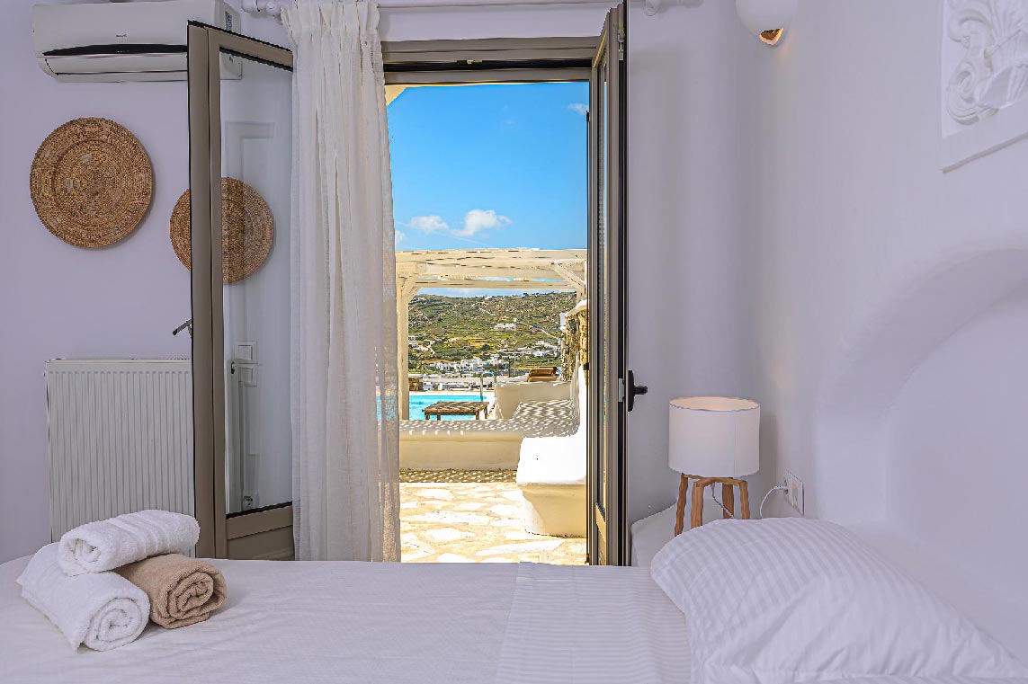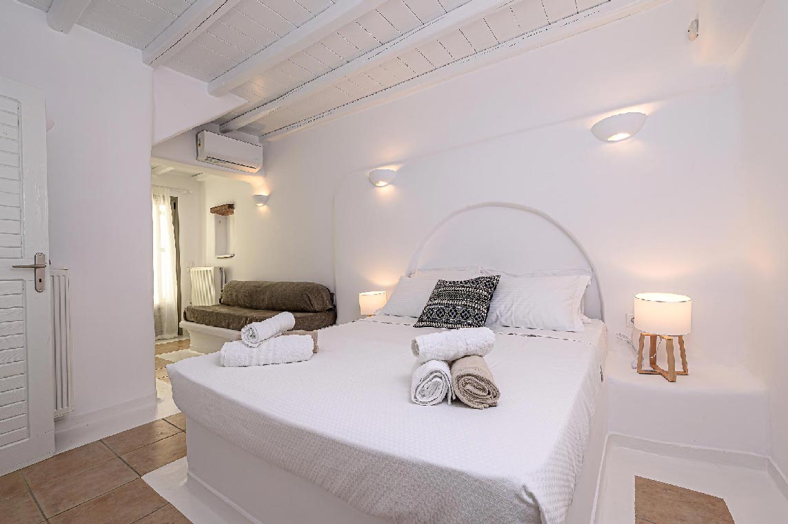 A hillside hideaway in a secluded nearly rural area although close to the town, where you can relax after a long day at the magnificent beaches of the island or a long night in the vivid nightlife. Carved on a hill, 200m from the coast, in an extraordinary setting framed by beautiful countryside, it blends uniquely in the rocky topography of its hillside, prime and unspoiled, setting. Traditional interiors, all in white, perched on a hillside with breath-taking, panoramic views over the Aegean Sea boasting a large open plan living area indoors and outdoors and offering privacy and seclusion in a very idyllic spot.