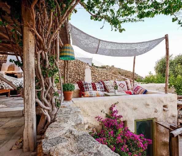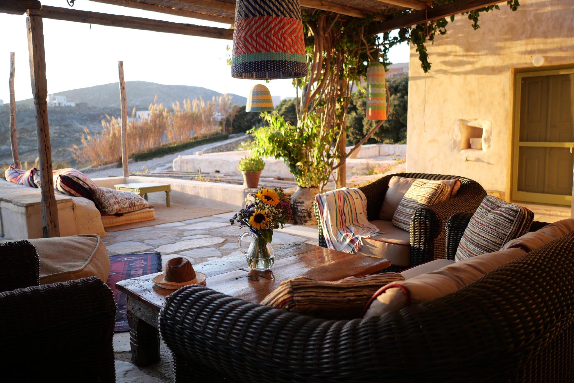 The main house has a shaded dining area and as a well as a Mykonian Style Tavern(La Taverna) on our premises , upon request