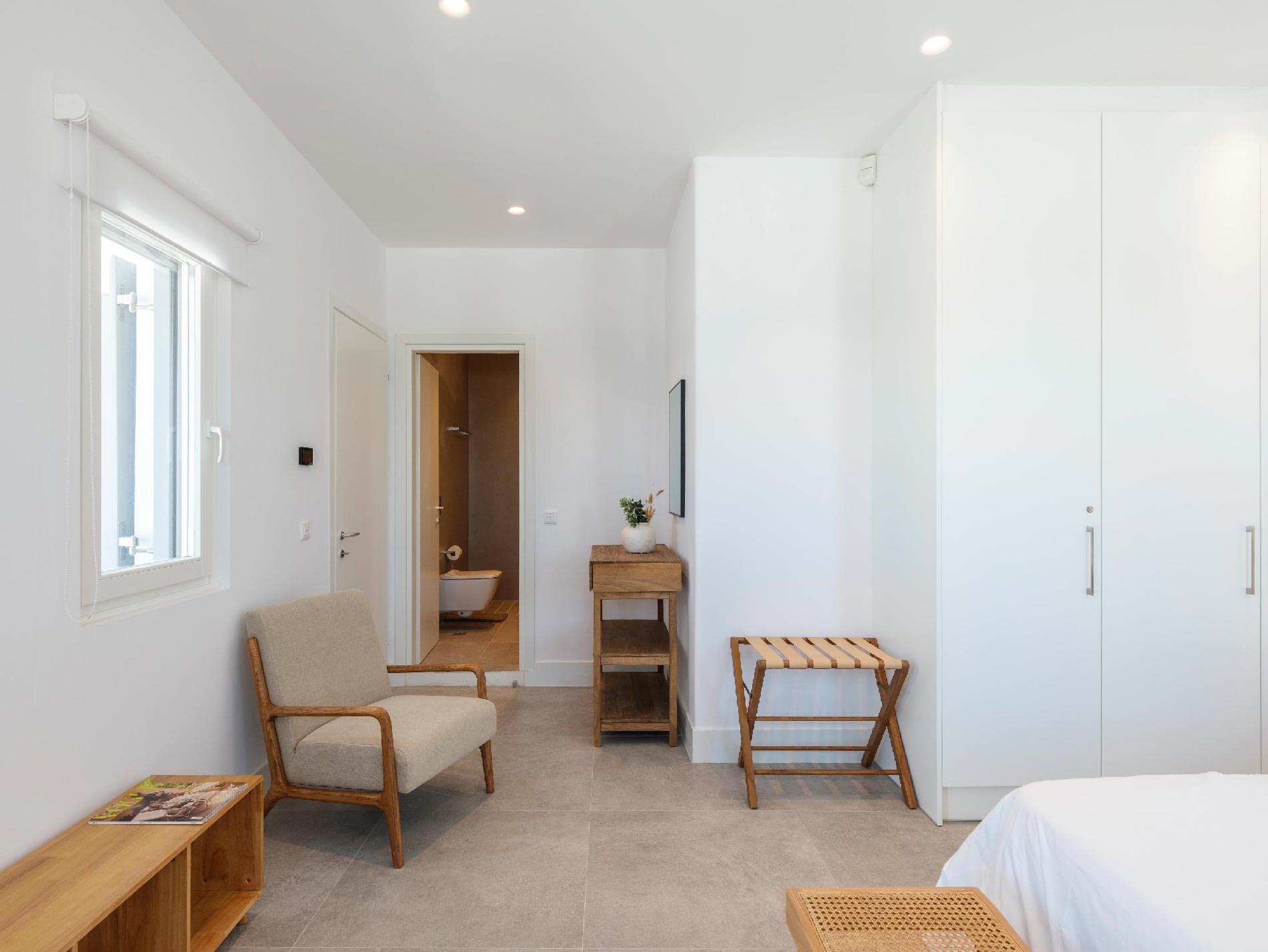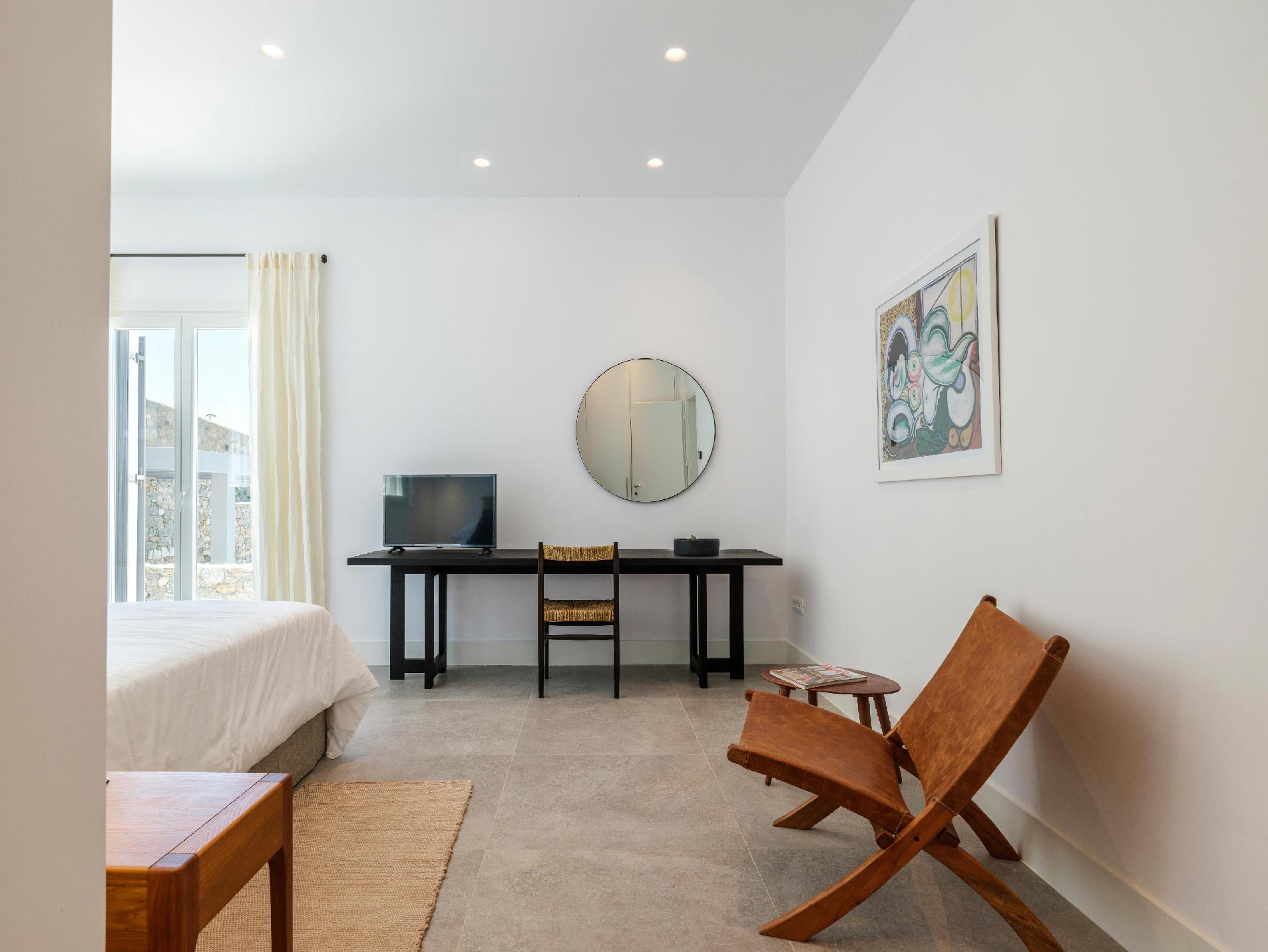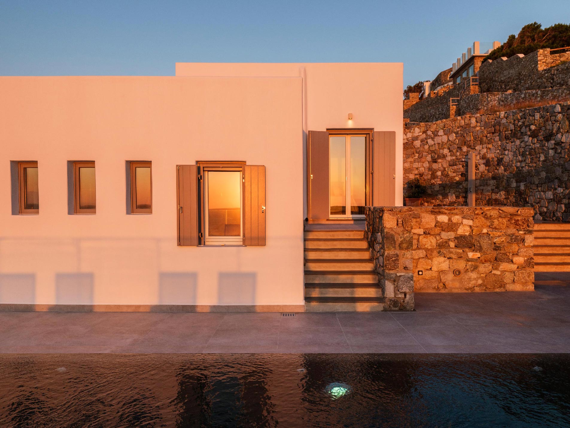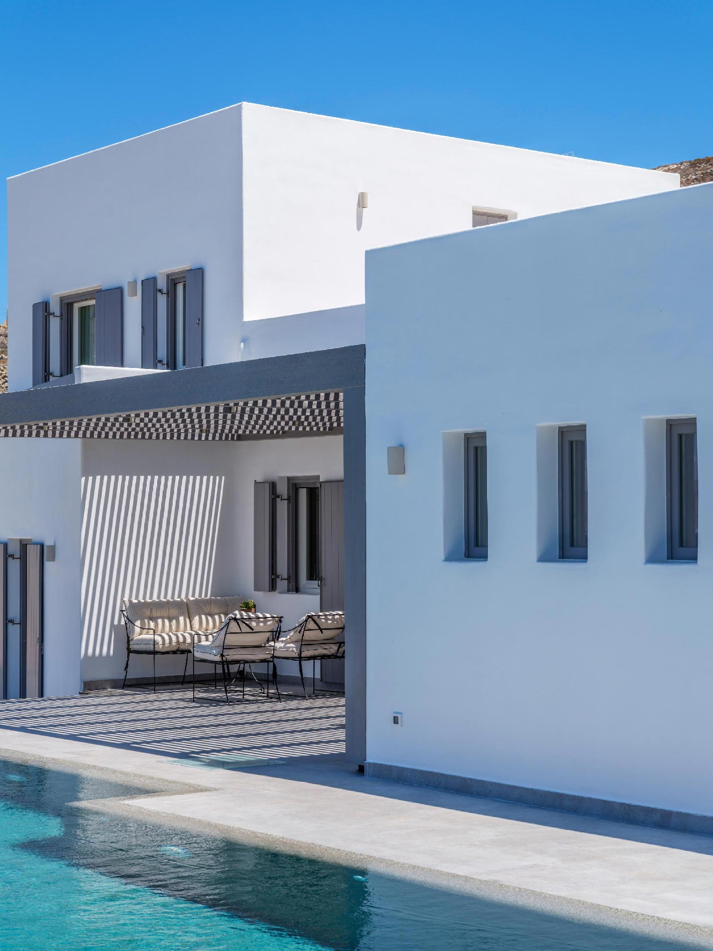 ➢ 3 Double bedroom with queen sized bed and ensuite bathroom. Equipped with AC, wardrobe, safe box and has direct access to pool and bed views to the Aegean Sea.