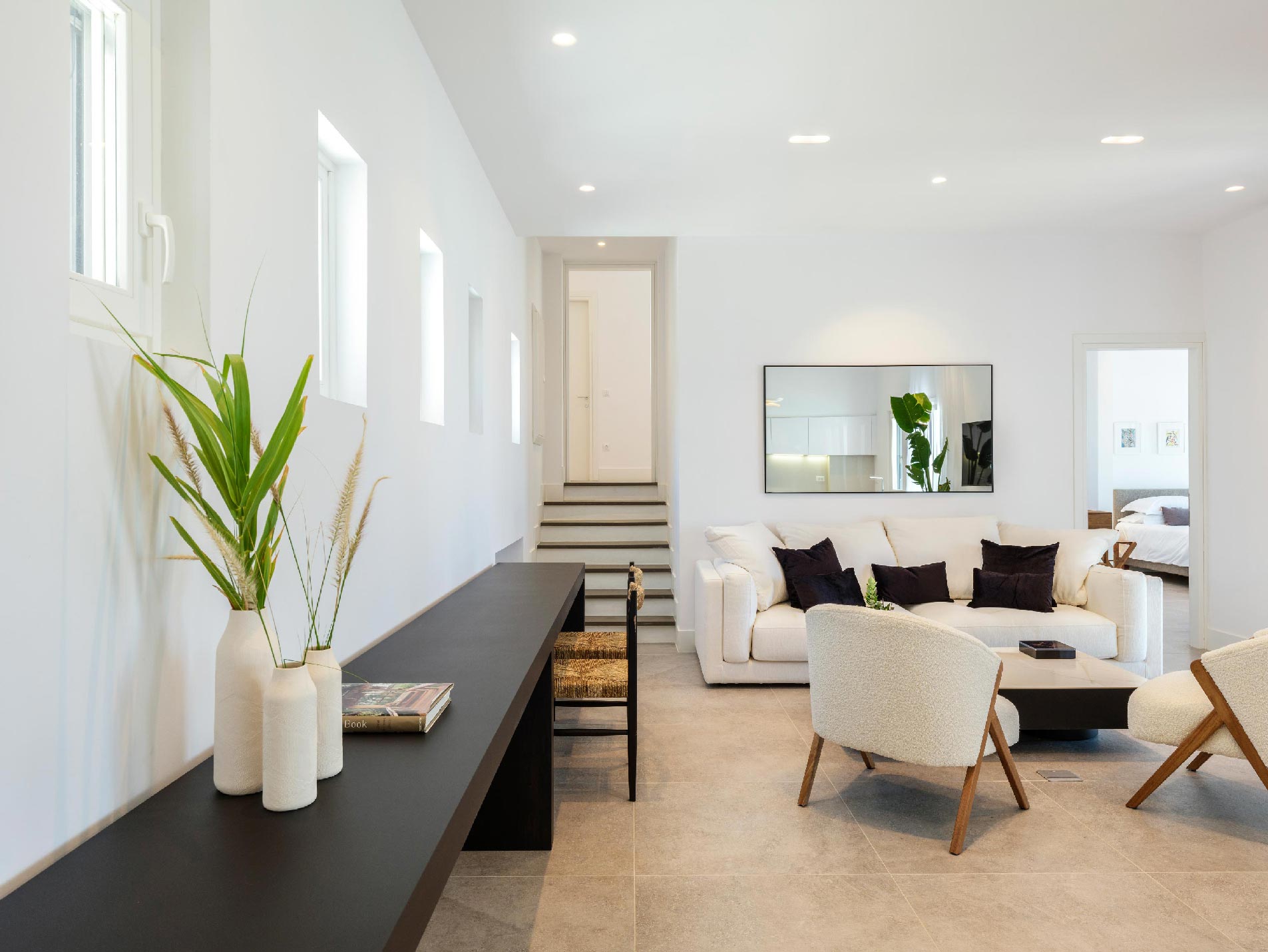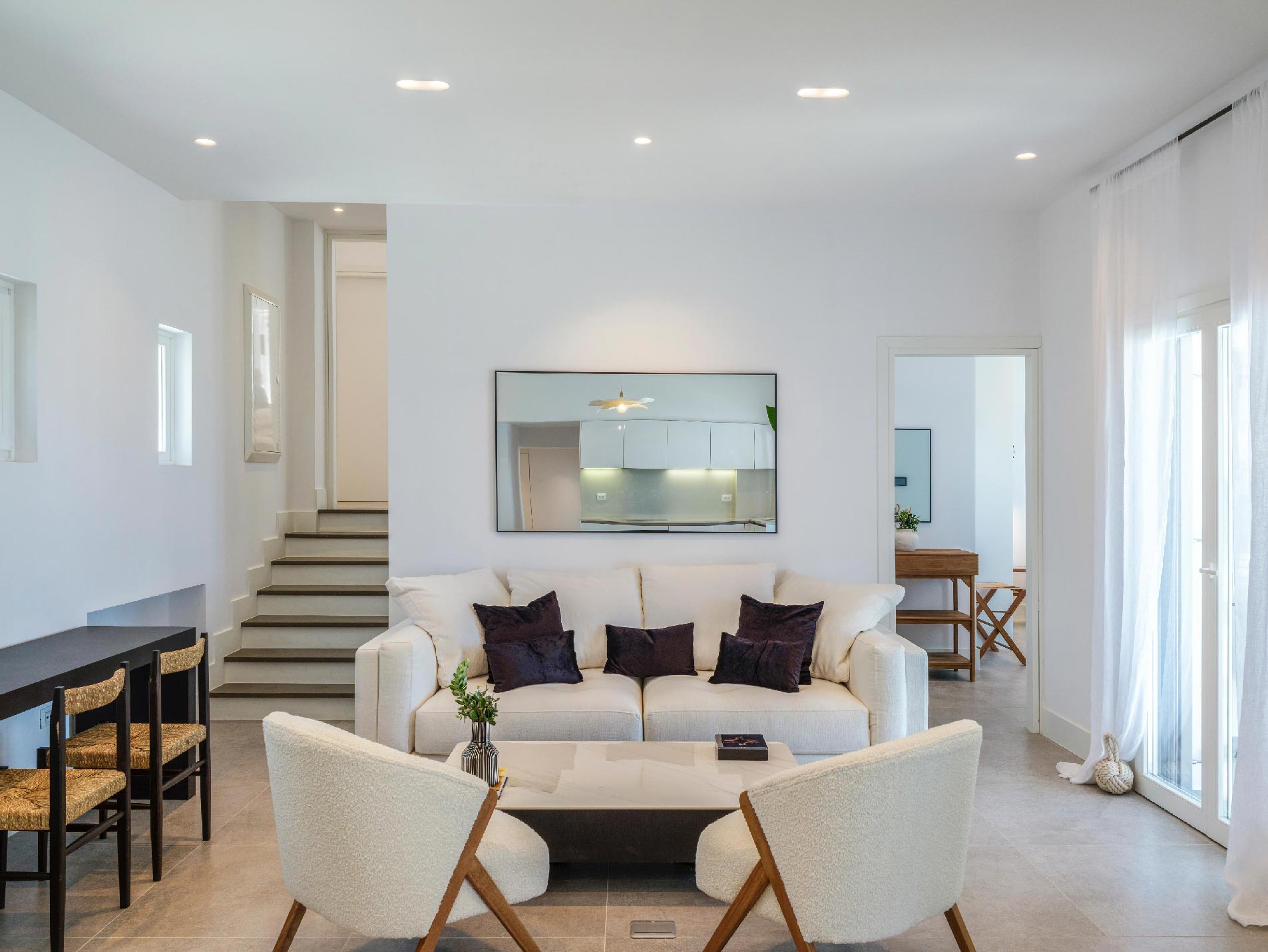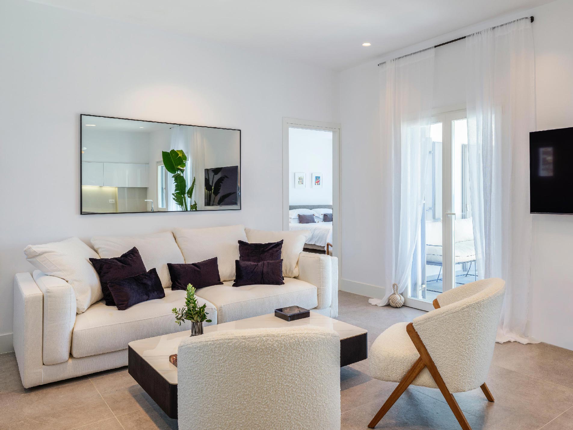 ➢ Spacious living area with comfortable sofa and large windows that open to the outdoor swimming pool area