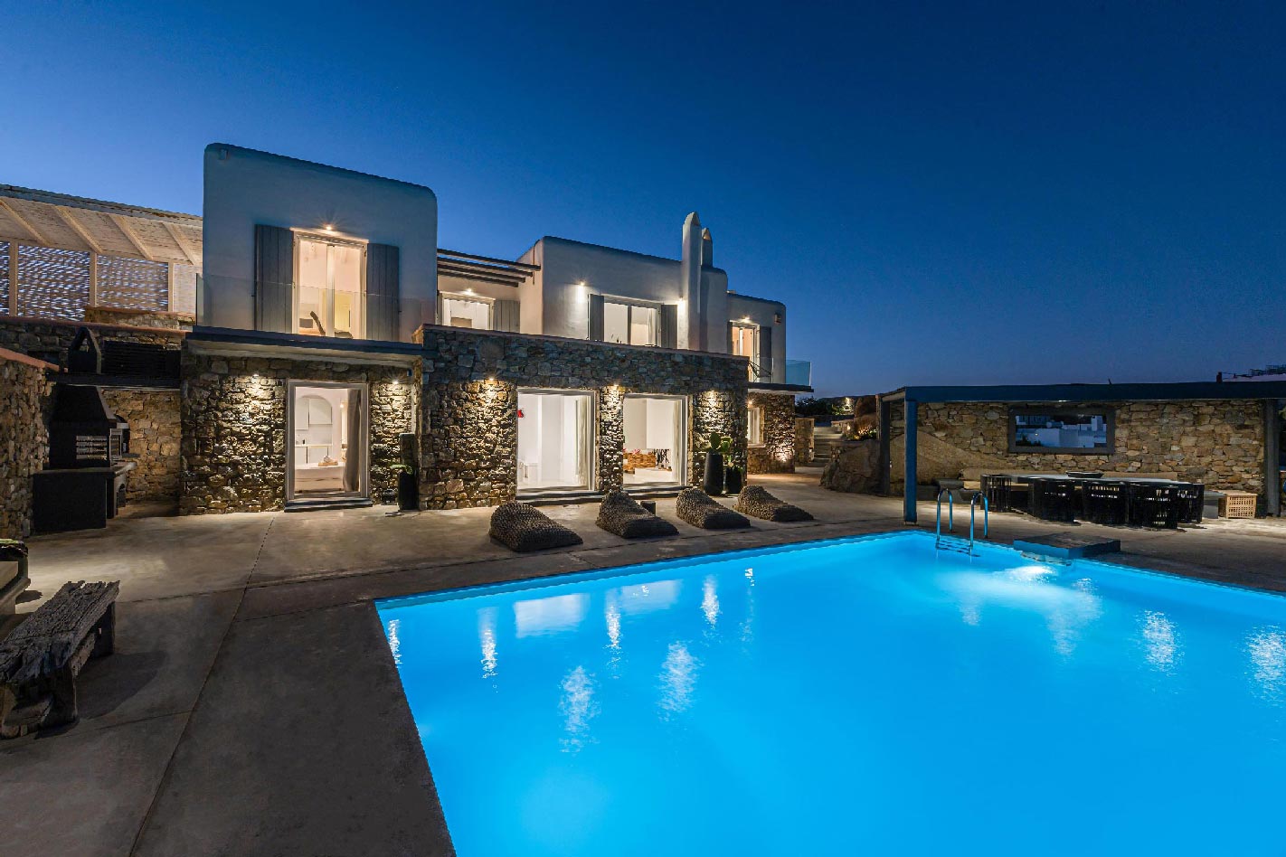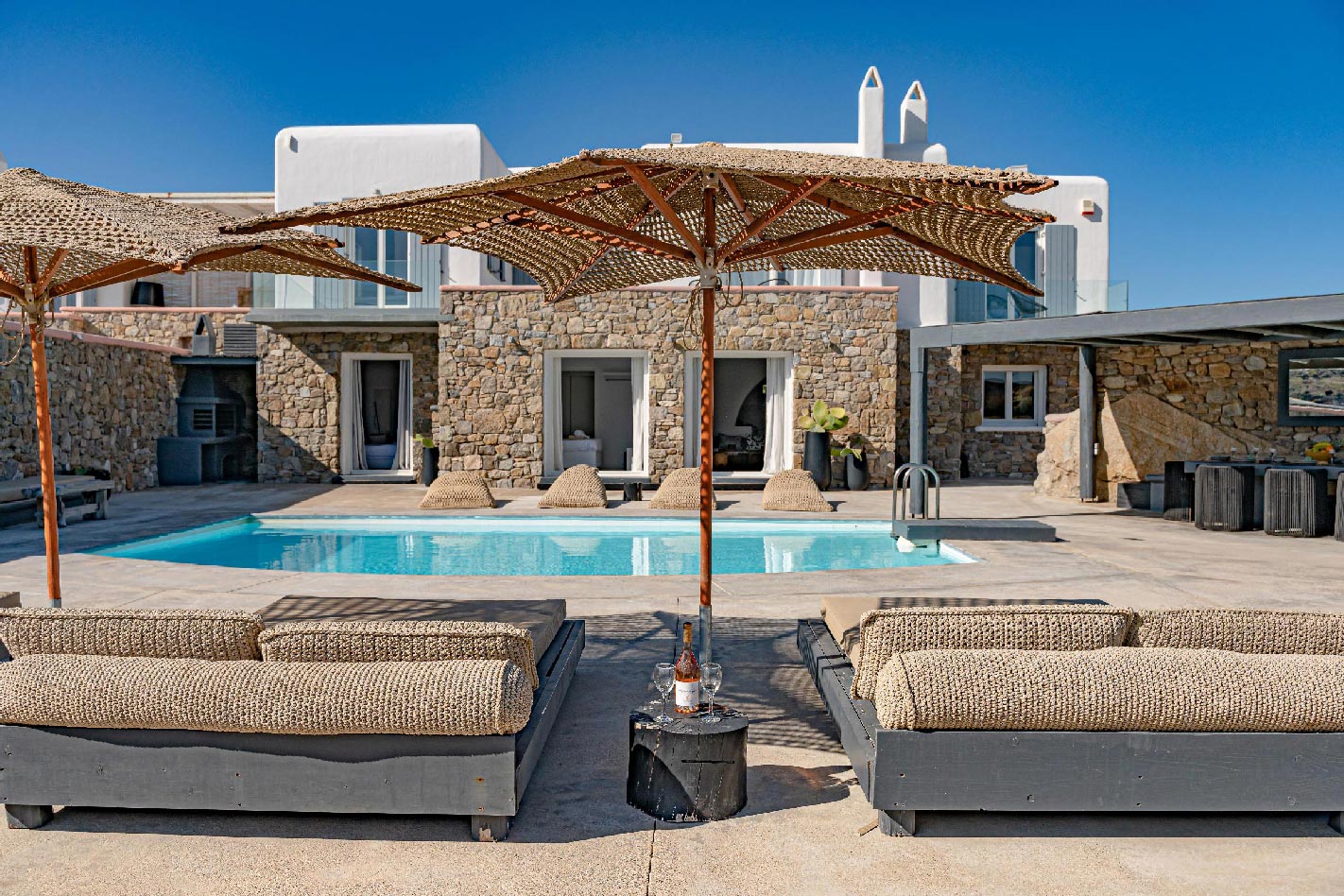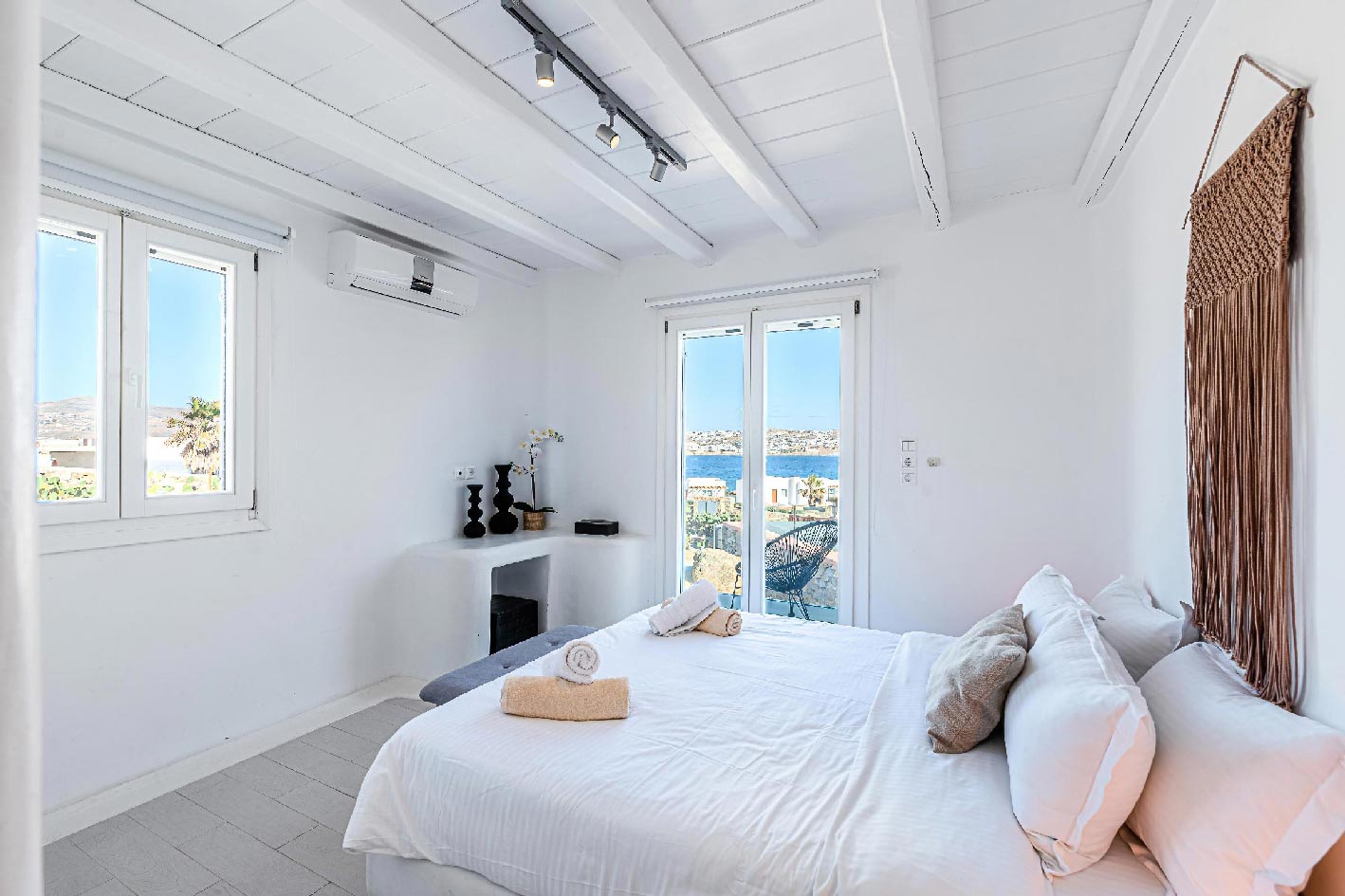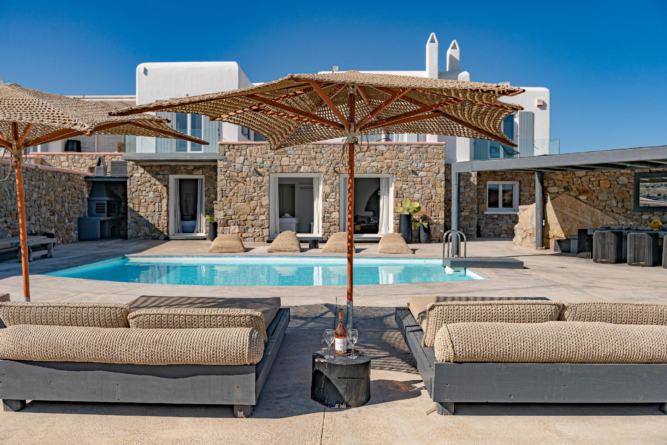 This is a modern villa build in 2015 in a unique location in Mykonos Canal with unlimited view of Mykonos Town, the port and the island of Tinos.