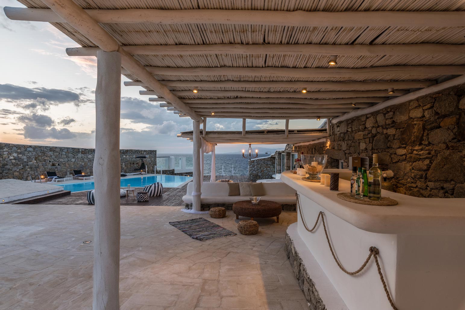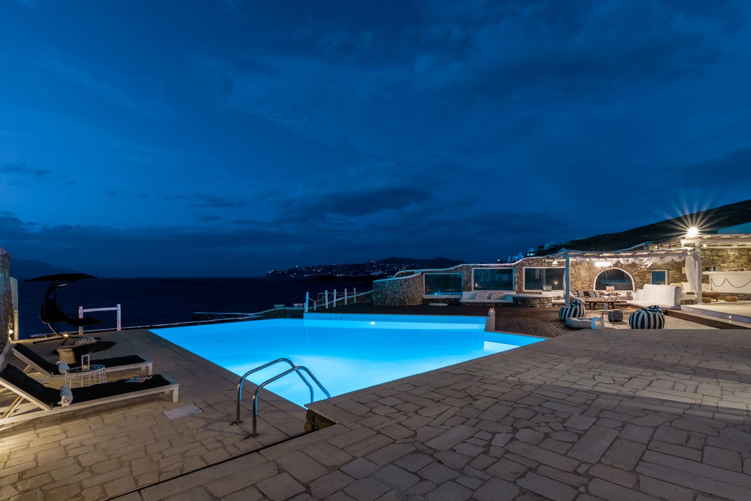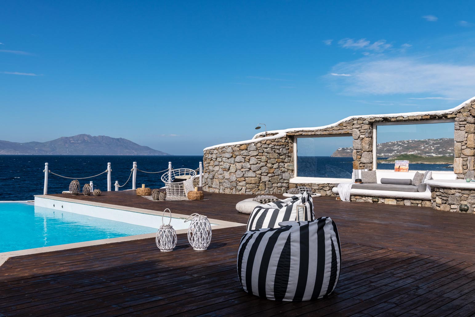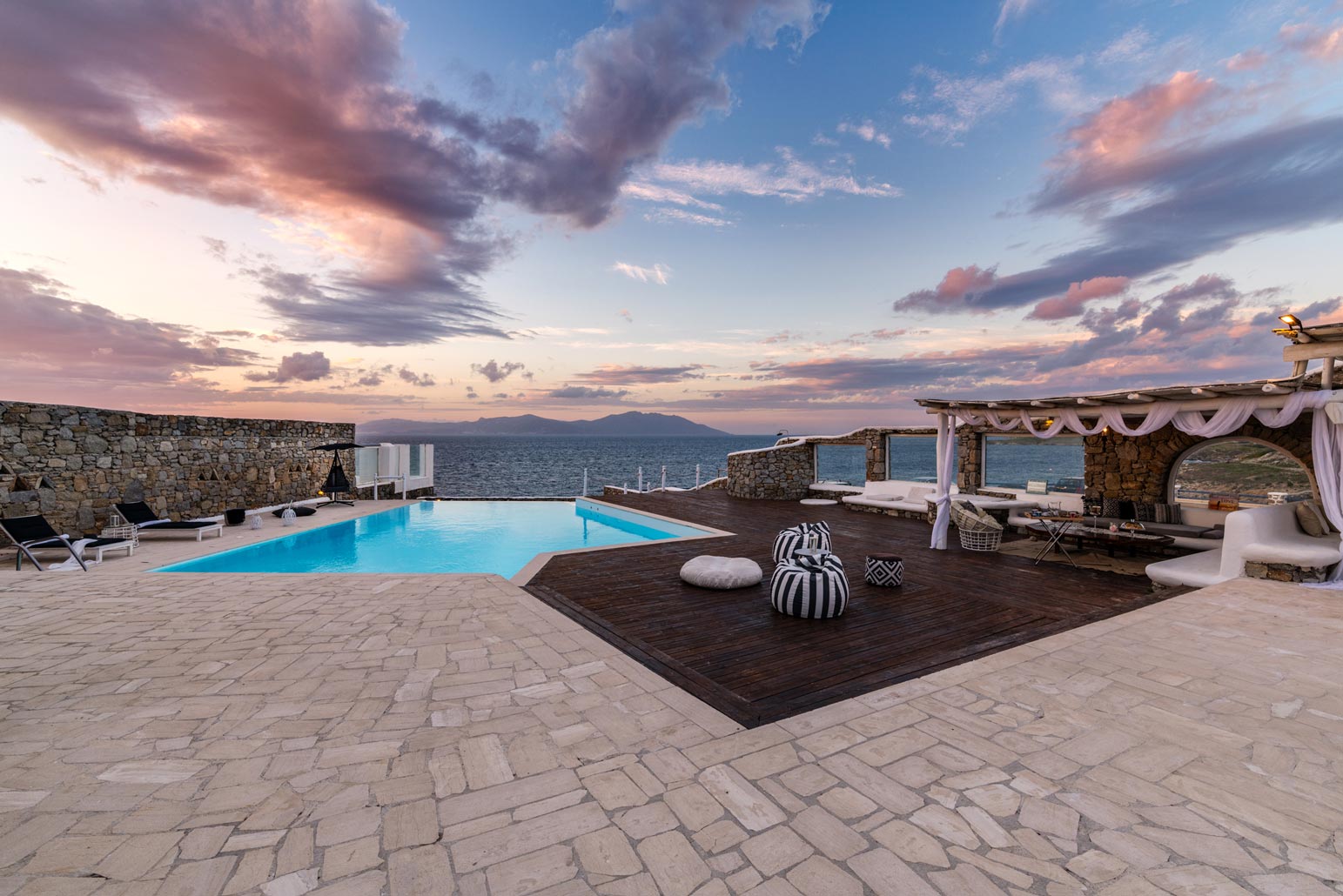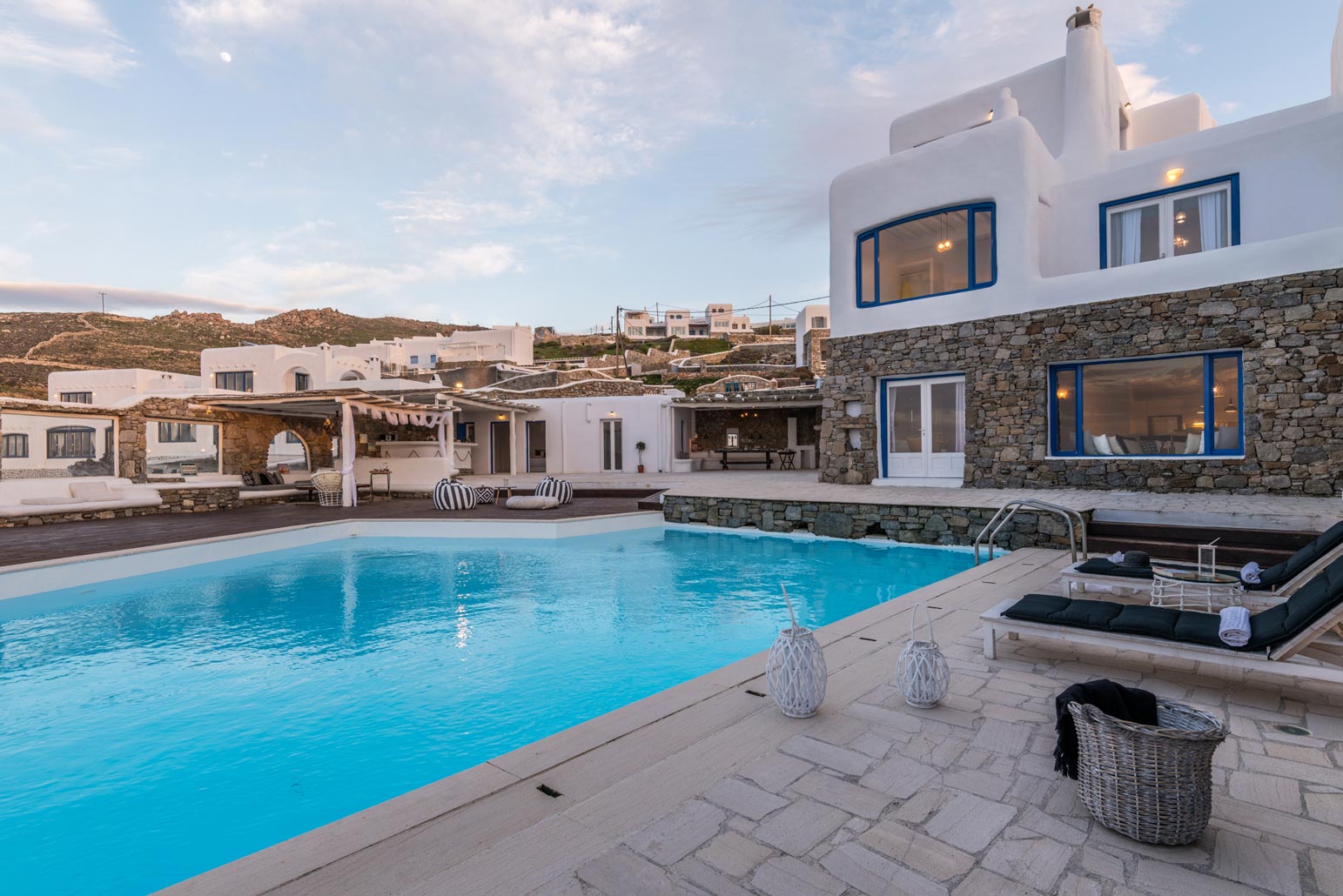 Villa Myrtia is a private residence of 260 sq.m. in a private area of 2.000 sq.m. South West of Mykonos, in one of the most privileged areas of the island. This luxurious villa is located next to the blue waters of the Aegean Sea painting them with the wonderful colours of the sun which sets in ancient Delos and are reflected in the town of Mykonos. Villa Myrtia is ideal for those who seek high standard holidays and privacy in a beautiful location with an easy access to the wonderful beaches of the island such as Ornos, Platy Gialos, Psarou etc. as well as the town of Mykonos, which is the centre of cosmopolitan nightlife.