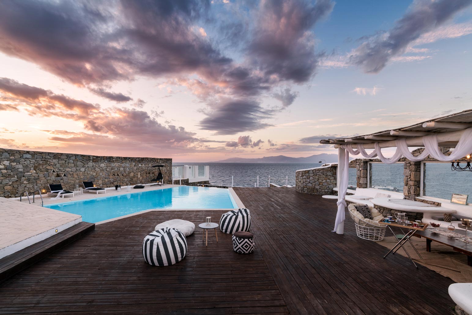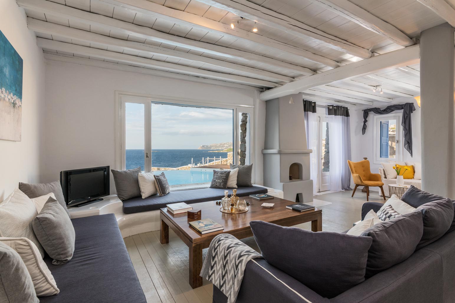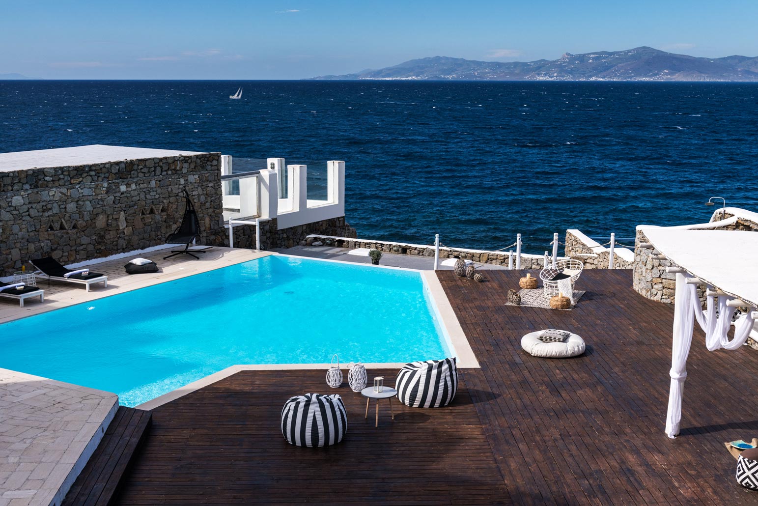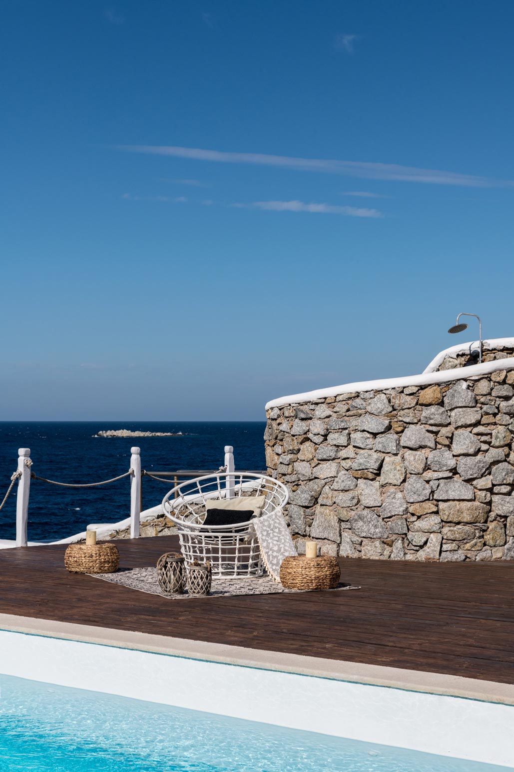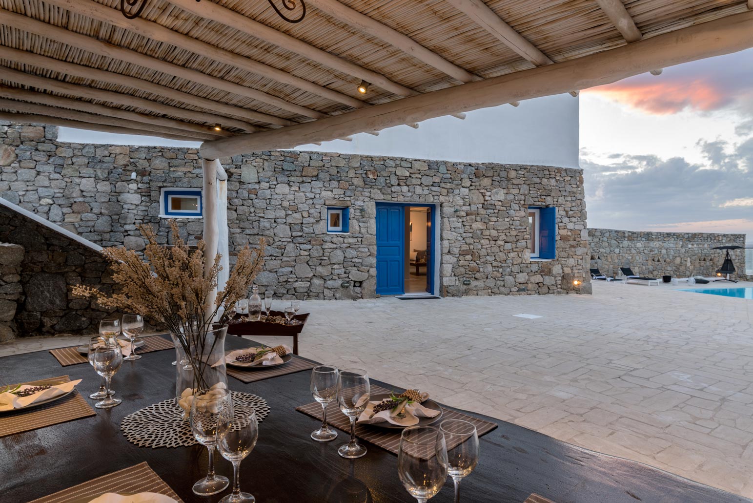 Villa Myrtia is a private residence of 260 sq.m. in a private area of 2.000 sq.m. South West of Mykonos, in one of the most privileged areas of the island. This luxurious villa is located next to the blue waters of the Aegean Sea painting them with the wonderful colours of the sun which sets in ancient Delos and are reflected in the town of Mykonos. Villa Myrtia is ideal for those who seek high standard holidays and privacy in a beautiful location with an easy access to the wonderful beaches of the island such as Ornos, Platy Gialos, Psarou etc. as well as the town of Mykonos, which is the centre of cosmopolitan nightlife.