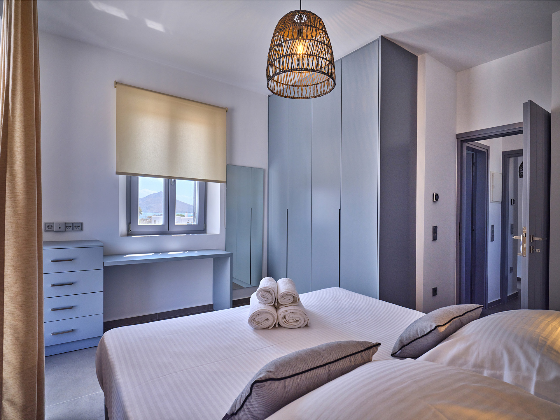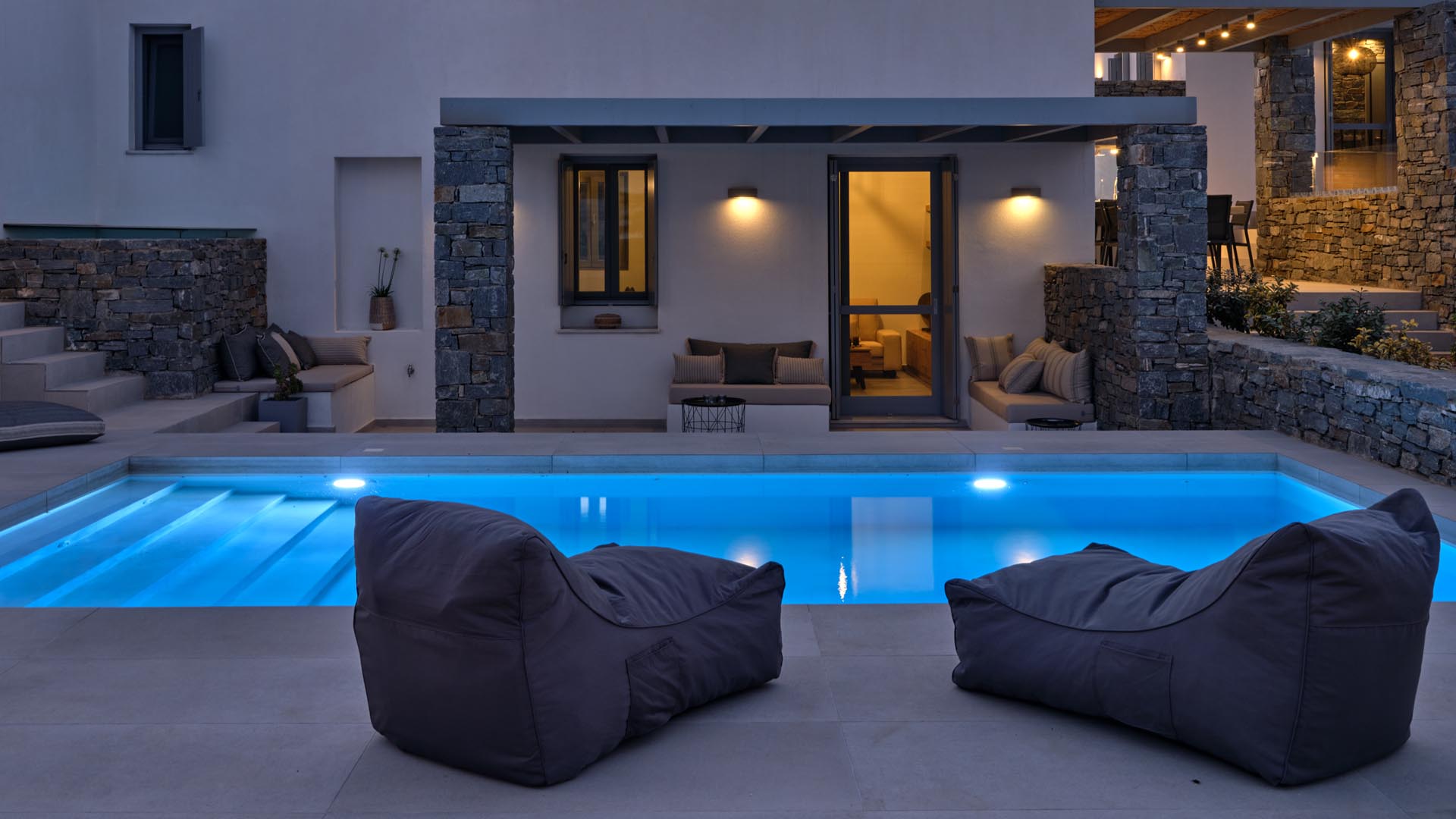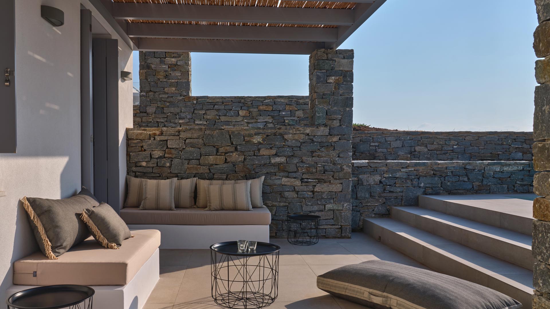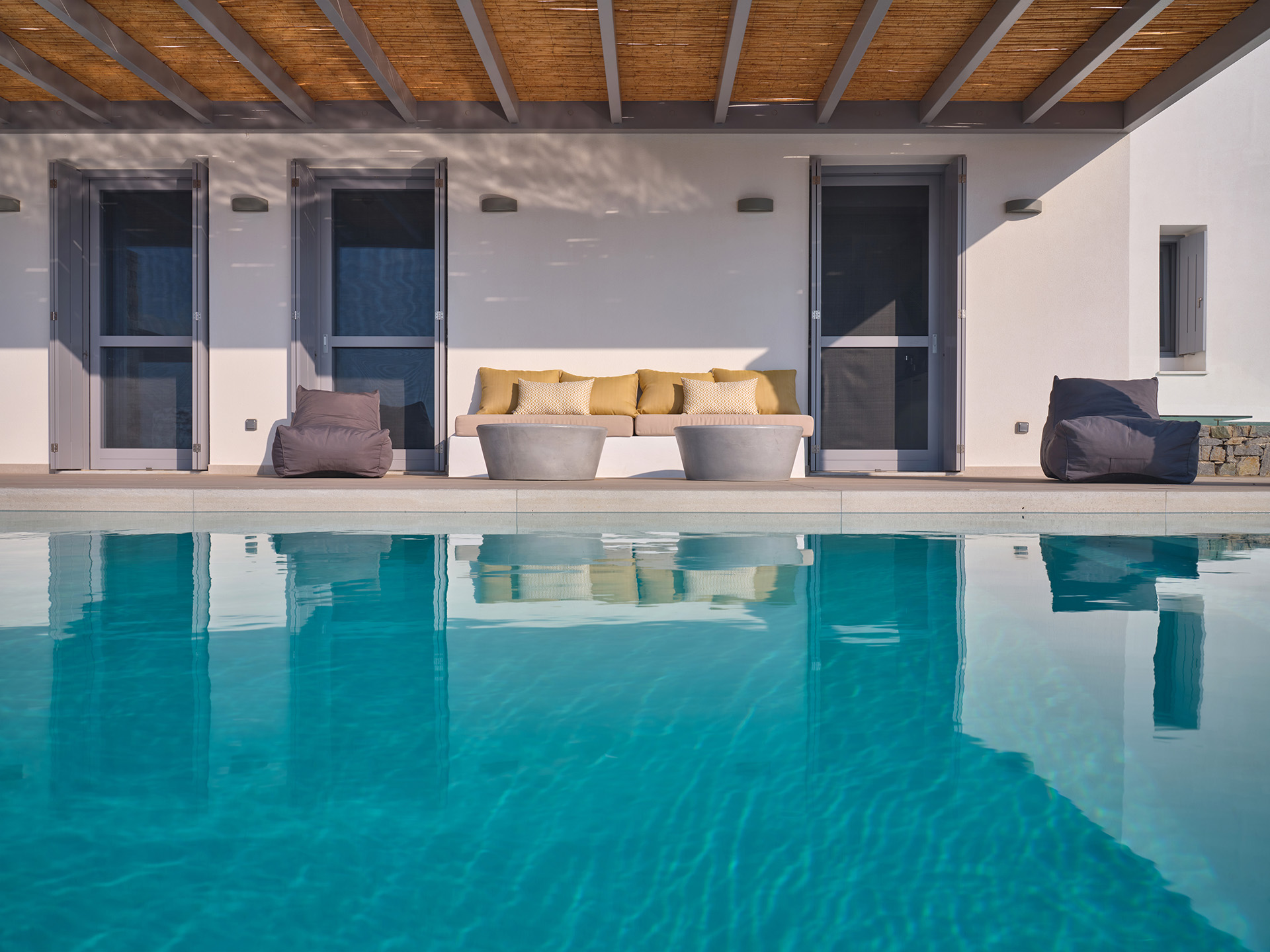 Villa Olivia is a luxurious residence complex at Isterni Paros, 4 klm from the beautiful town of Naousa, with the picturesque port and the exciting night life. Some of the most beautiful beaches of the island, like the Big and the Small Santa Maria, Ambelas and Kolimbithres, are just a few minutes’ drive away from the complex, while some others, such as Golden Beach, Molos, Kalogeros and Monastiri are a bit further, but the crystal-clear sea and the golden sand will reward even the most demanding visitors. The residences are amphitheatrically built, totally attuned in the surroundings, offering serenity, privacy and a unique view facing the island of Naxos.