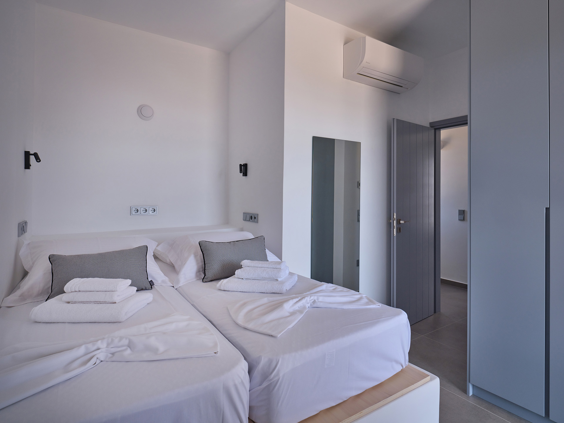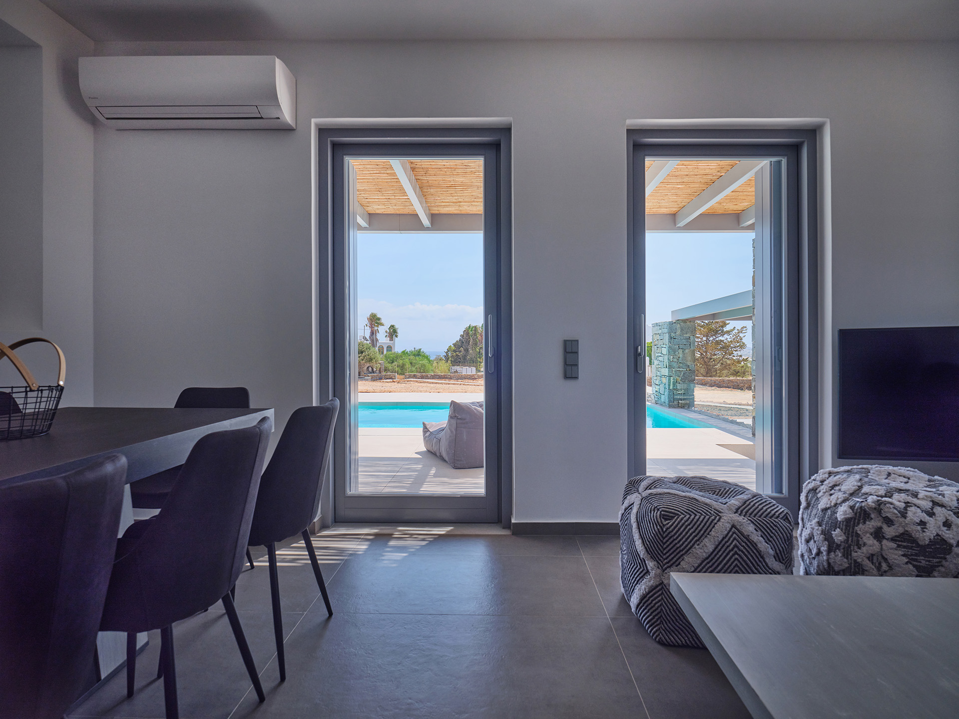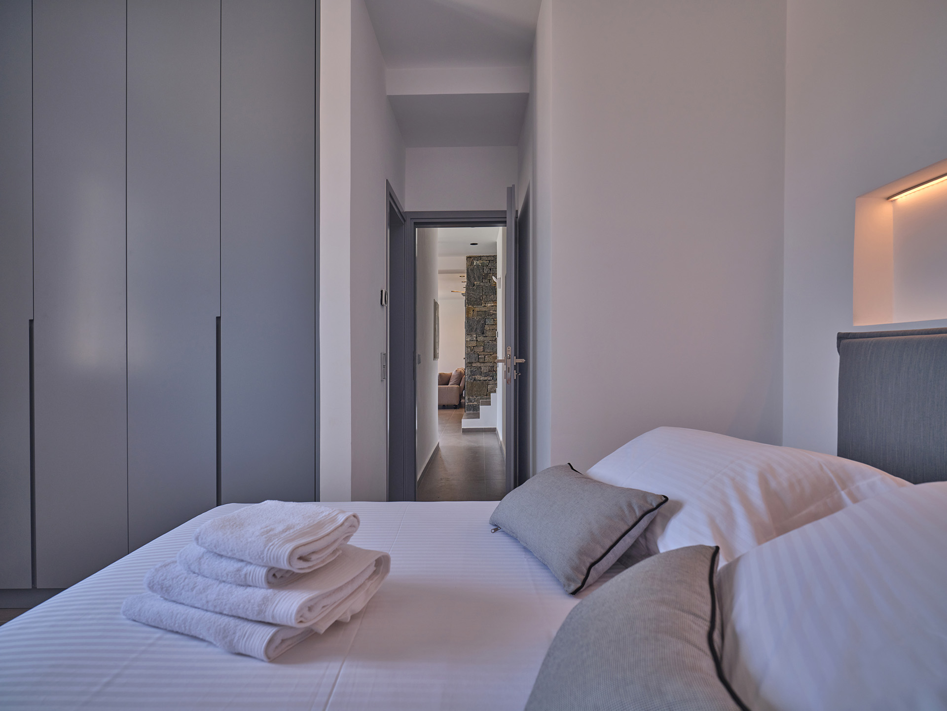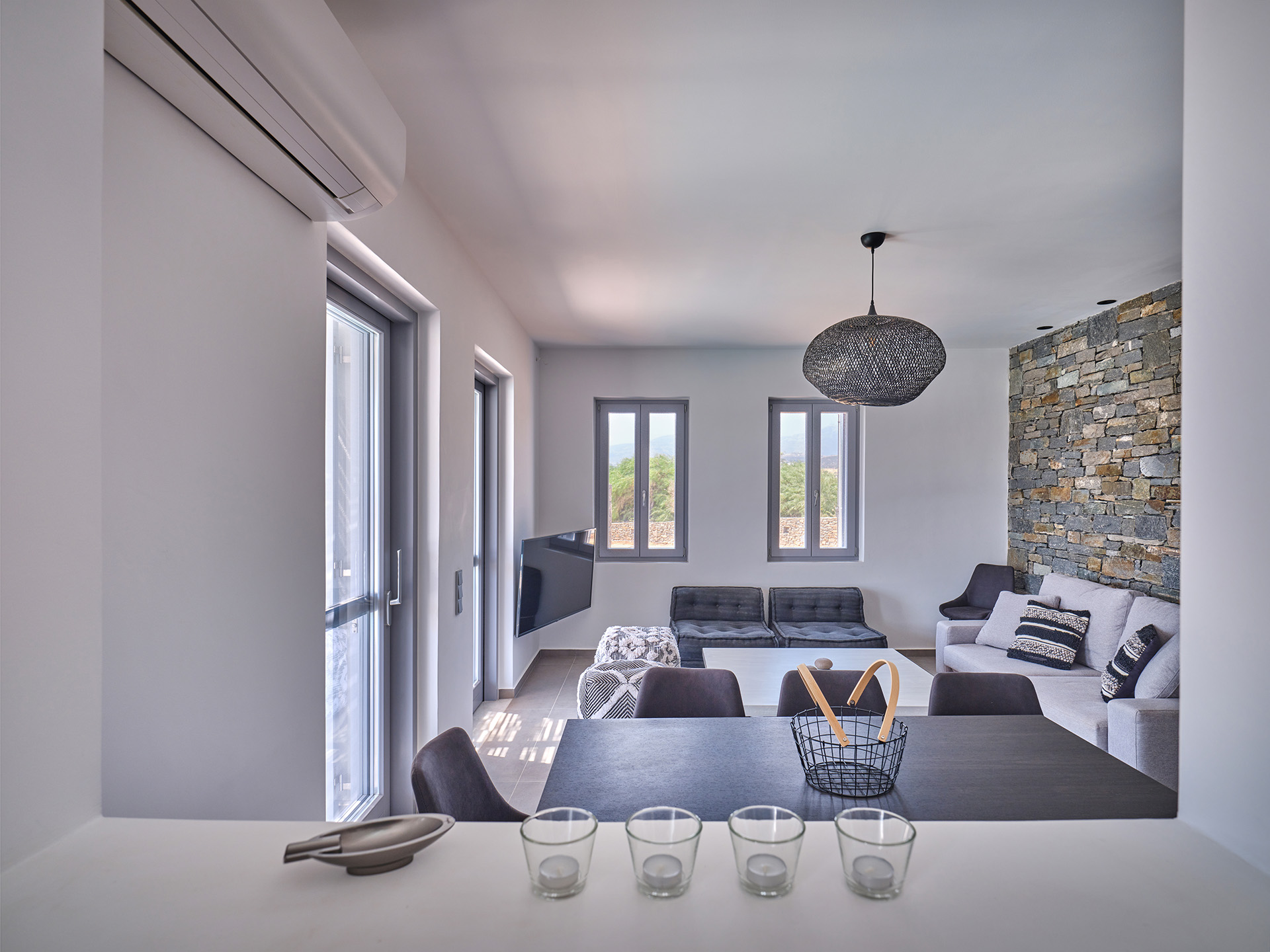 Villa Olivia is a luxurious residence complex at Isterni Paros, 4 klm from the beautiful town of Naousa, with the picturesque port and the exciting night life. Some of the most beautiful beaches of the island, like the Big and the Small Santa Maria, Ambelas and Kolimbithres, are just a few minutes’ drive away from the complex, while some others, such as Golden Beach, Molos, Kalogeros and Monastiri are a bit further, but the crystal-clear sea and the golden sand will reward even the most demanding visitors. The residences are amphitheatrically built, totally attuned in the surroundings, offering serenity, privacy and a unique view facing the island of Naxos.