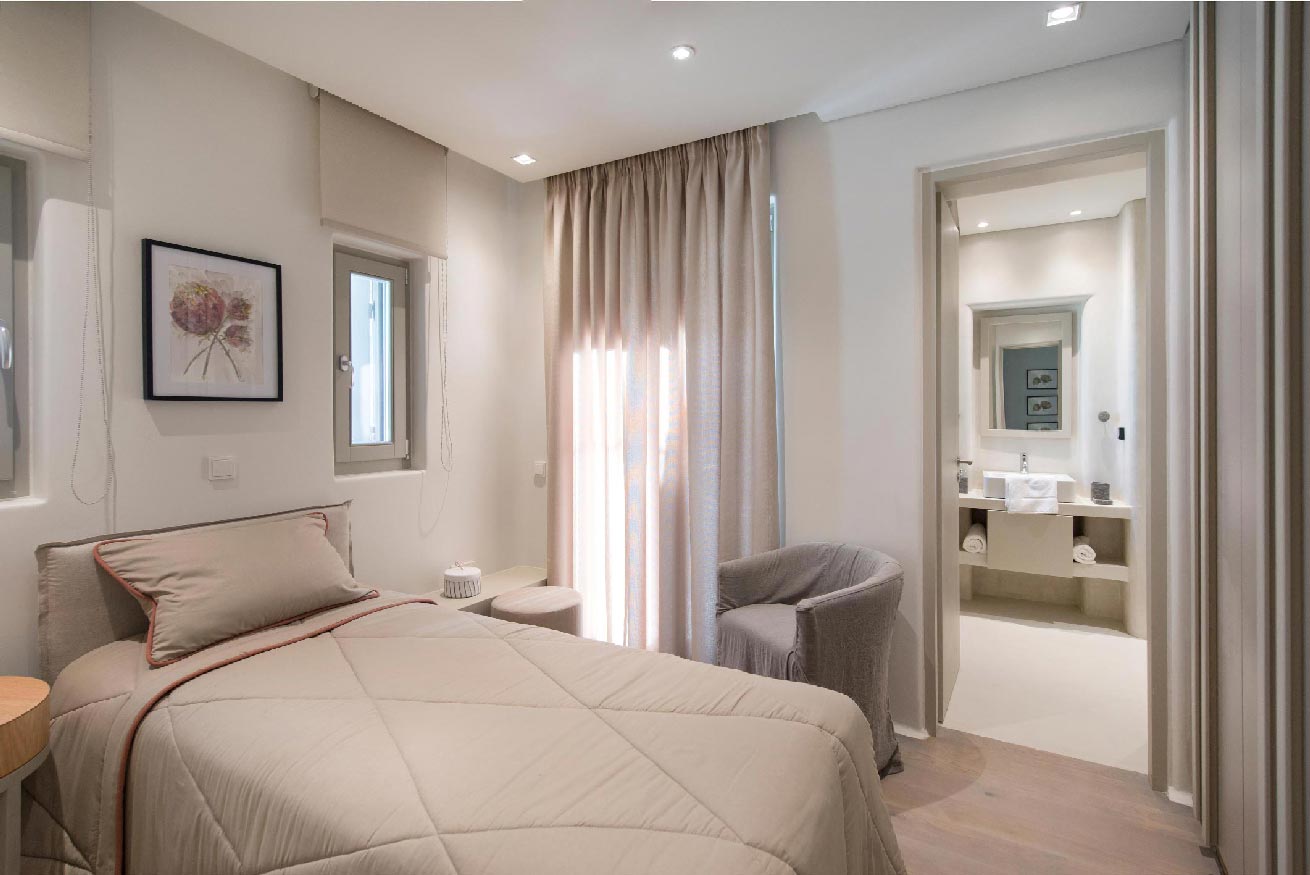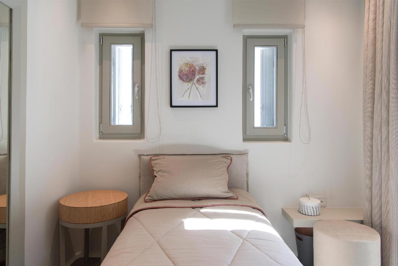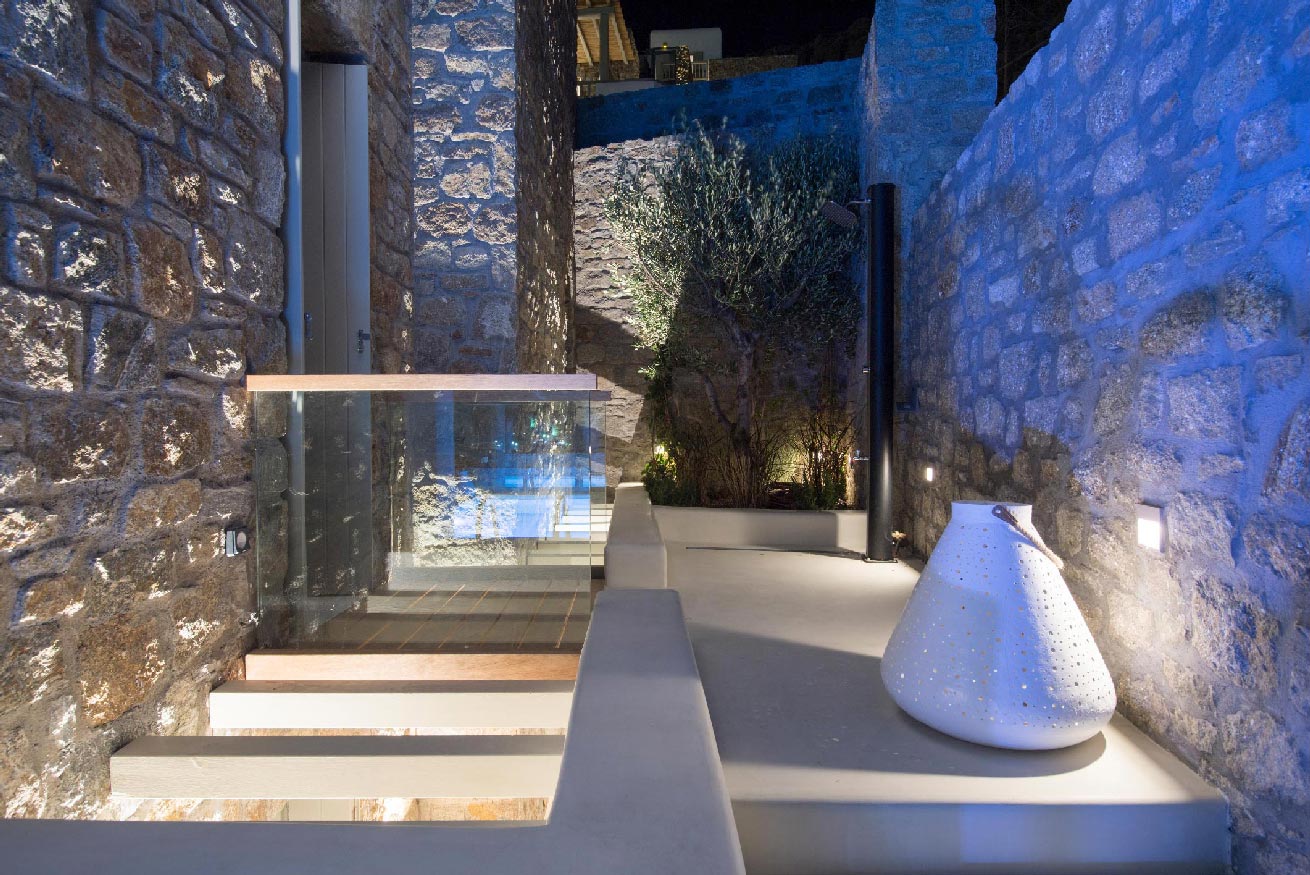 Mykonos. Whether you’re traveling with family or a large group of friends, this villa is the perfect destination. Plus, guests have easy access to an unorganized beach within walking distance.
