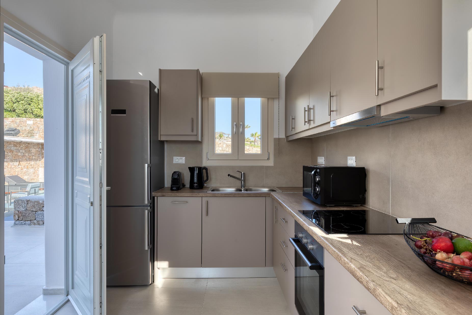 Clear blue sky and a view as far as the eye can travel, elegant and spacious lounging areas will surround you along with the villa’s Cycladic architecture. The outdoor area simply fulfills every individual need in an oasis-like environment from every aspect. The deck is almost floating above the sea and equipped with sun loungers, is perfect for leisure days soaking up the sun. Your only task is to relax by the amazing pool and allow your senses to free themselves away from indiscreet eyes.