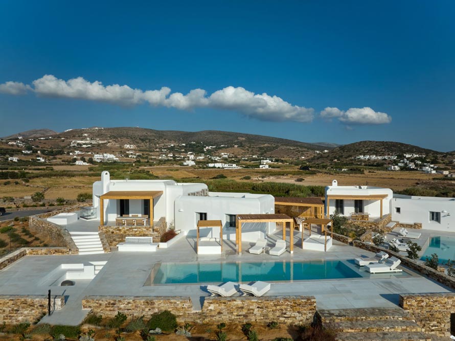 Villa Pegasus sits elegantly on an amazing plot in an unparalleled position facing the Aegean sea and located just 300 m from a swimming spot close to Agia Irini. It is a complex that consists of 3 independent villas, each one with its private pool.