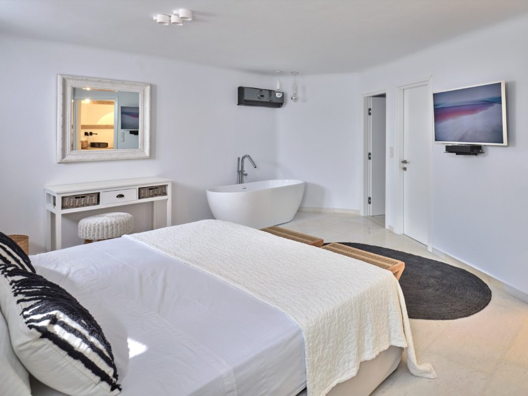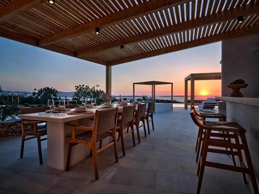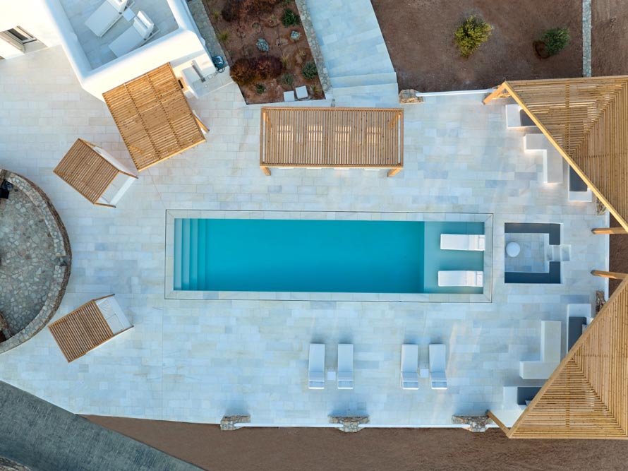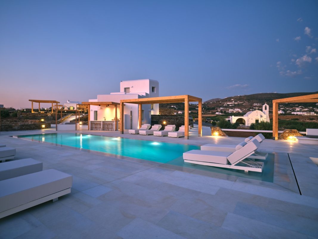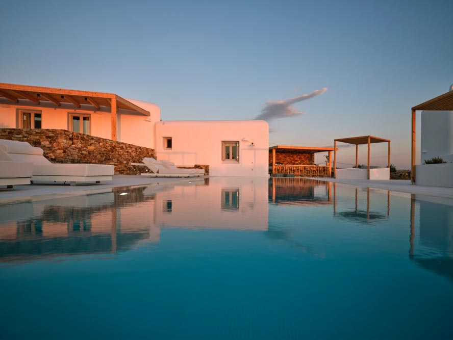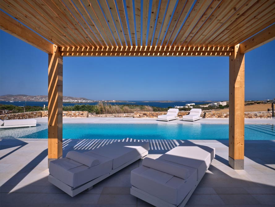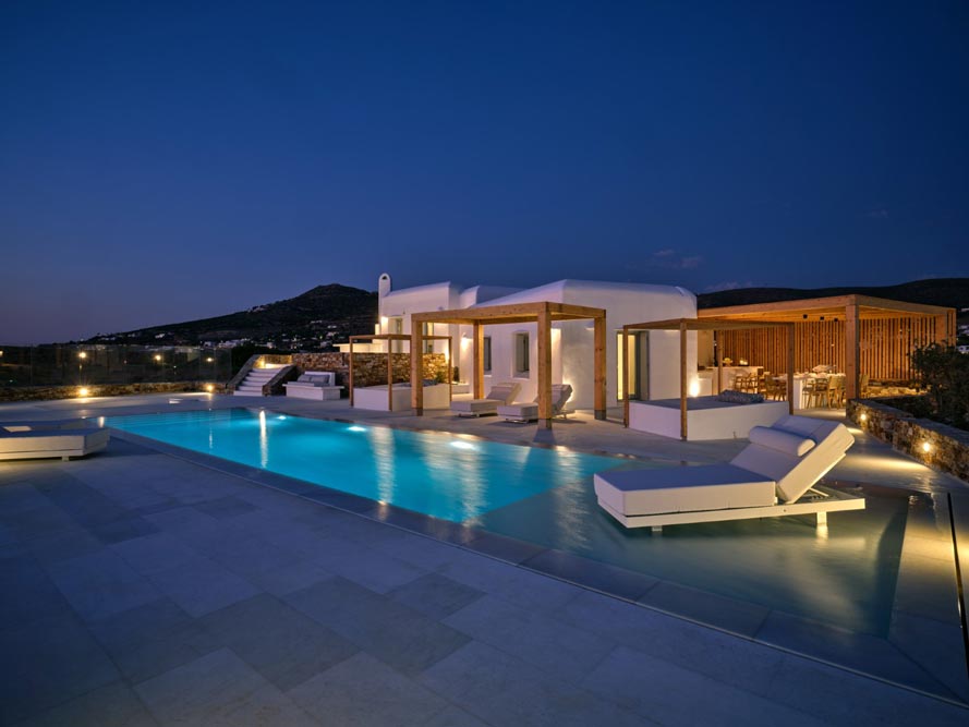 Villa Pegasus combines contemporary clean line architecture with a Cycladic influence creating a modern luxurious setting both in and outdoors. Indoors the Villa’s white predominates with wooden and marble touches.