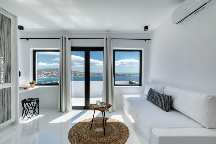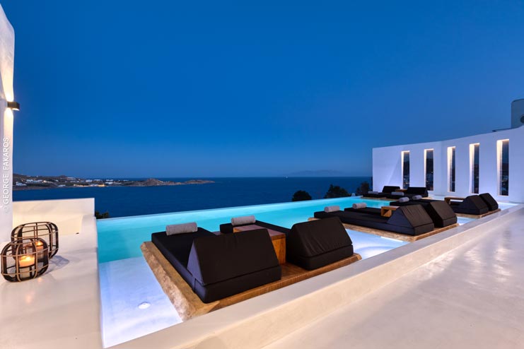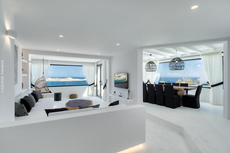 Perched on a hill in the most sought-after area of Mykonos, with uncanny views of Psarou Beach across the sea, villa Phani is a design sensation worthy of an international jetsetter. Modernist in structure, but with a strong Cycladic heart, villa Phani is a stunning contemporary home imbued with a soulful bohemian character, standing nearly at the edge of the land, at times seeming to merge into the sea itself. Parties, champagne corks popping and private yachts parading before your eyes. If you love nothing more than a touch of glam and indulgent luxury, then look no further than this one-of-a-kind summer lair for up to 10 lucky guests.