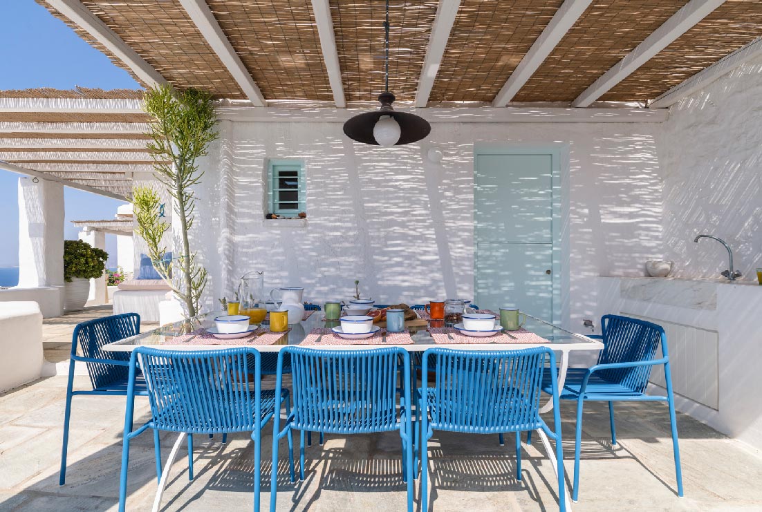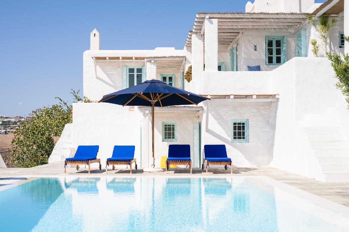 One of the most lovingly refurbished villas on Mykonos, indulges guests with sophisticated Cycladic hospitality and a feeling of being pampered by good friends. The villa boasts a 180-degree panorama of Cycladic islands and Mykonos town, allowing guests to imagine those early Aegean travelers leisurely crossing the sea on their way to trade goods or pilgrimage. Rafaelis stands out for its understated sophistication and unique character that follows an alternative approach to Mediterranean holiday living and it can easily accommodate up to 14 guests in 6 beautiful bedrooms.