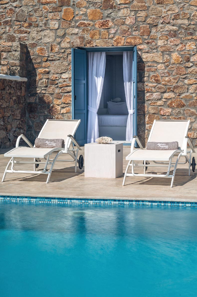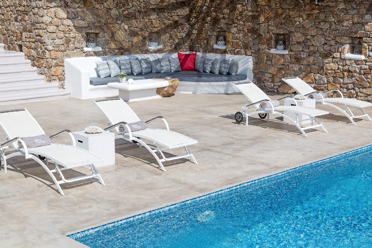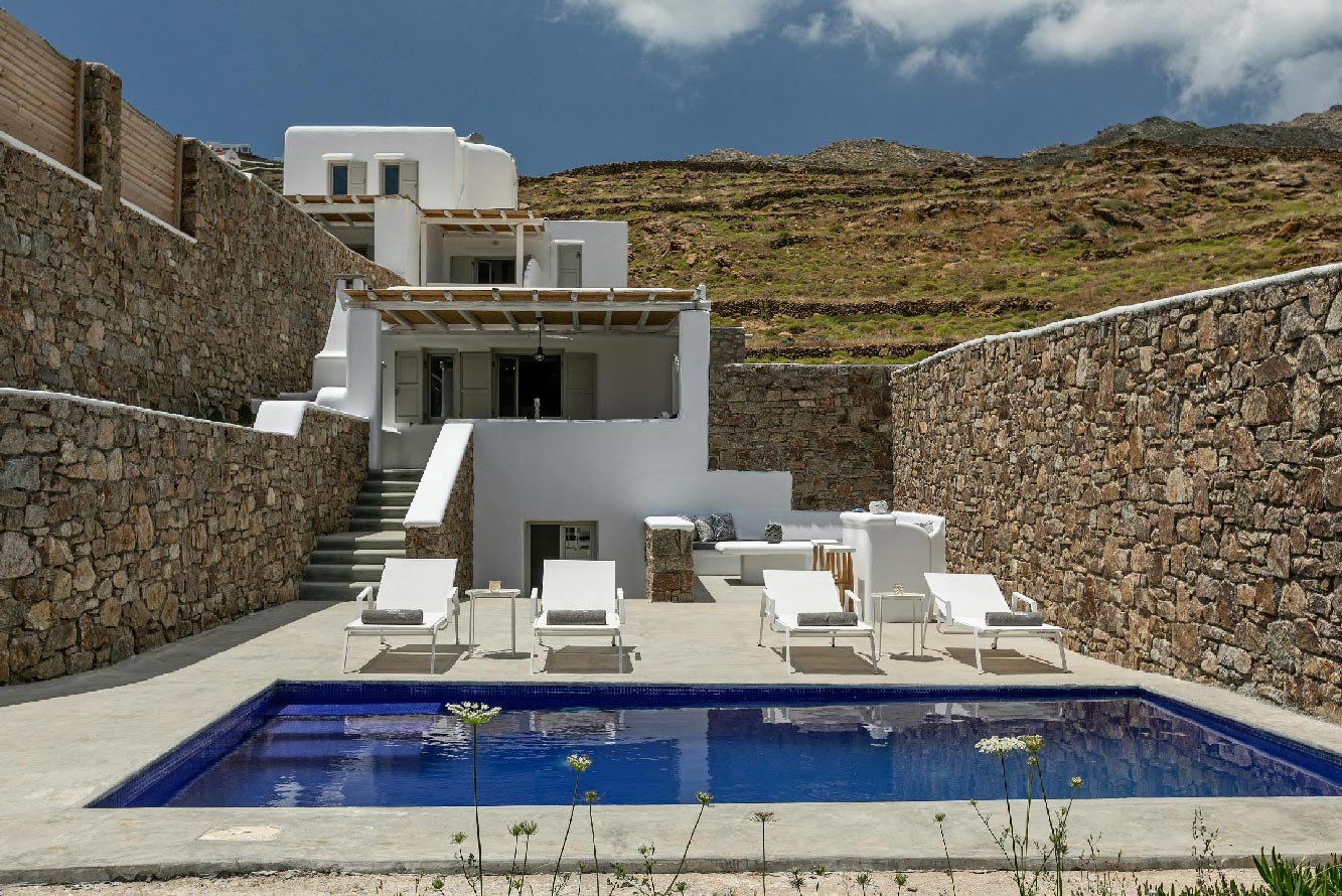 Set on 55,000 meters the villa is situated in one of the most scenic areas of the island. Villa Remo is located 300 meters from Panormos Beach, the well known Principote Beach Bar and Restaurant, 1km from Agios Sostis Beach and only 5km from Mykonos Town, the airport and port. The property has been designed to integrate tailor made experiences and understated elegance with the leisurely island lifestyle and vibrant nightlife that has made Mykonos a world class destination. Vila Remo provides the perfect combination of privacy, services, natural beauty and location.