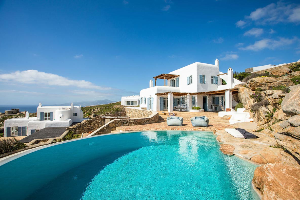 This is a beautiful 5-bedroom villa is located just above the new port of Mykonos. Its magnificent infinity pool provides stunning views of the Aegean Sea and the surrounding islands. This elegant property is ideal for spending hot summer days relaxing by the pool or vast lounge area and experiencing the flamboyant festivities of Mykonos Town during nighttime.