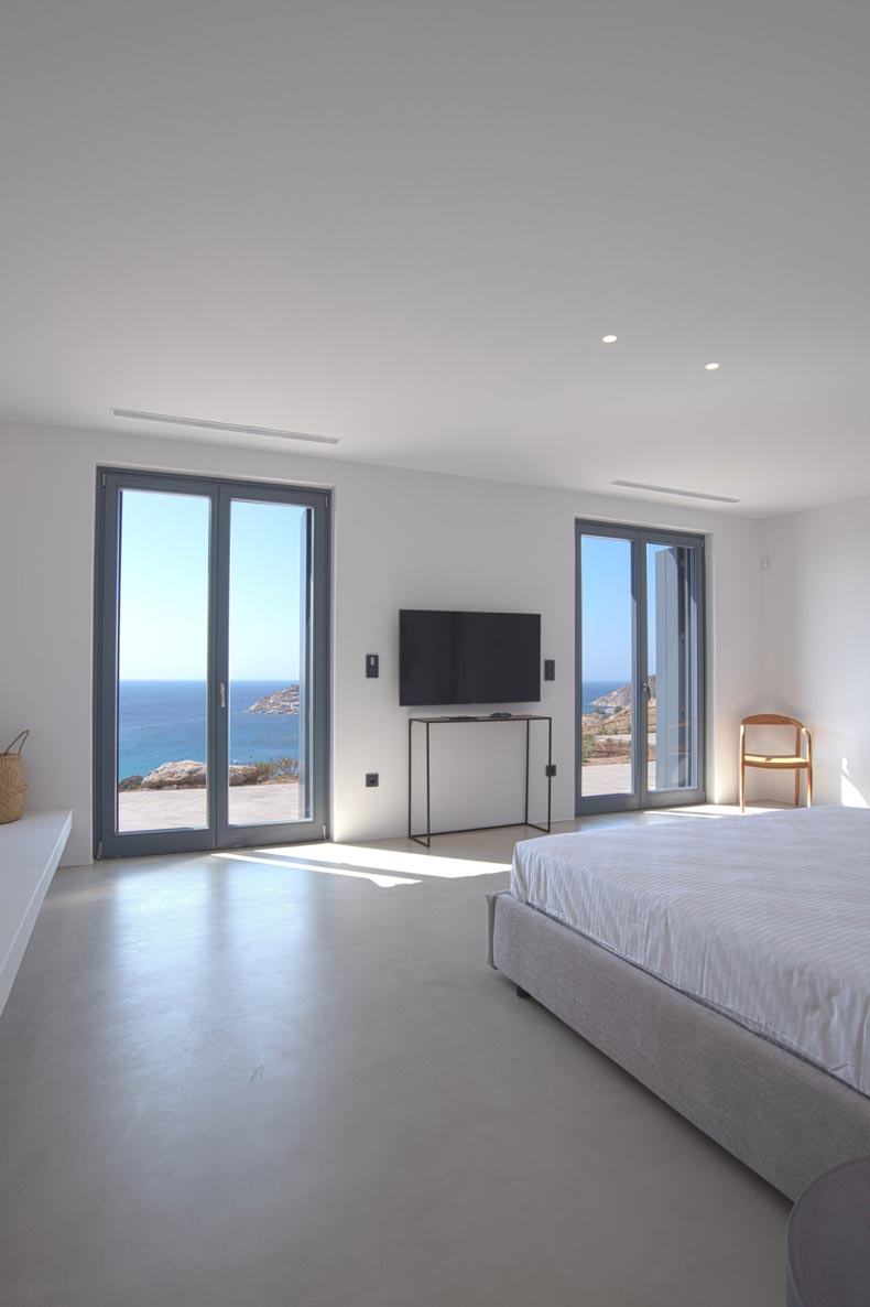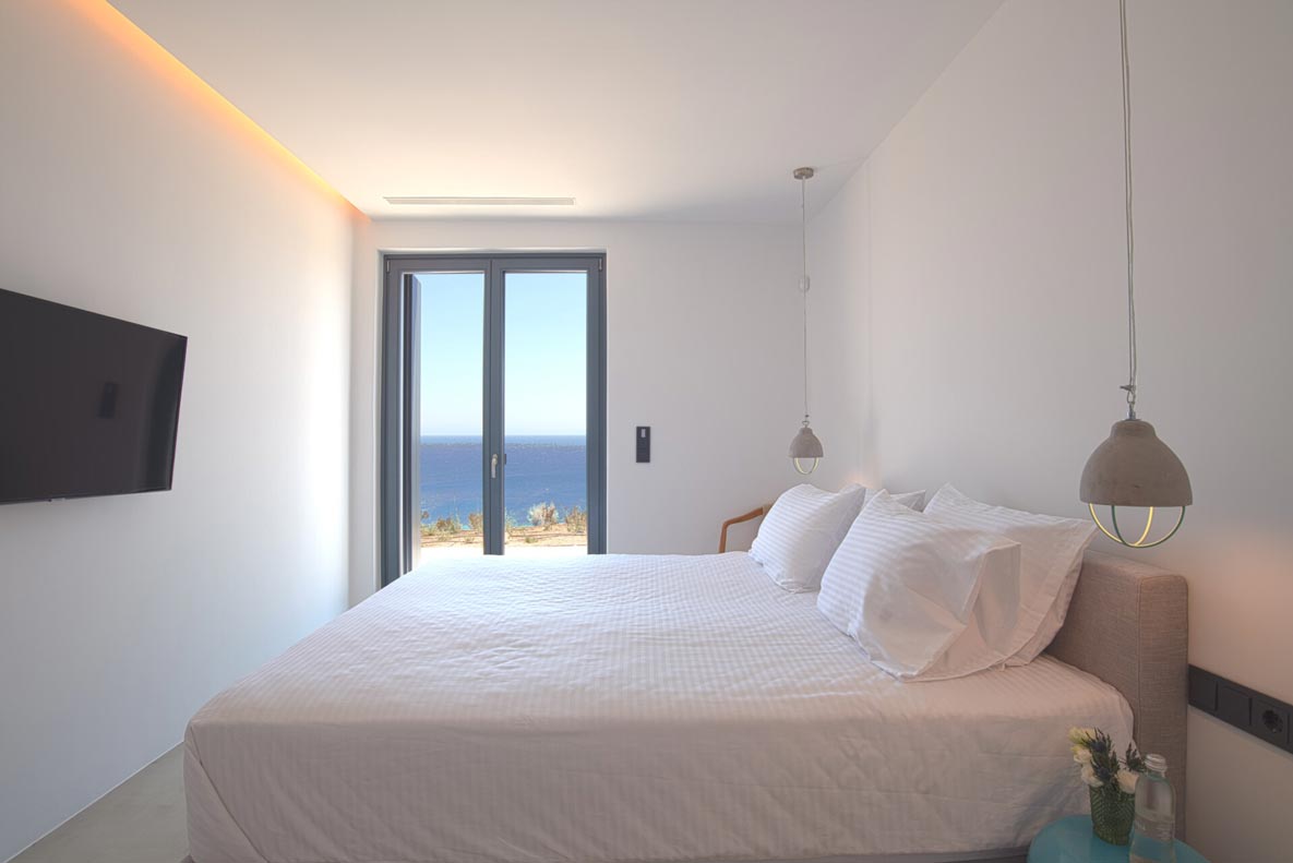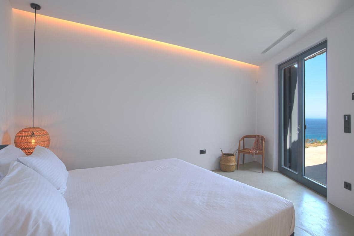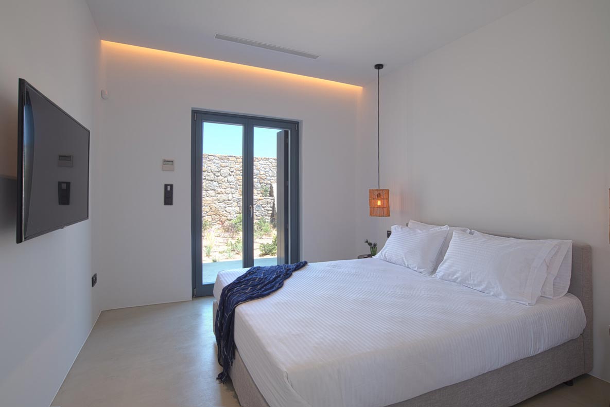 A stunning hillside villa graced with understated elegance: furnished in muted tones, warm woods, and local stone combine for a luxurious but relaxed ambiance. Breakfast in a pergola shaded lounge, indulge in fine dining on the expansive terraces, or float dreamily in your fabulous infinity pool where a cerulean sky invisibly joins the sea. Or perhaps watch Venus rise at sunset while toasting yet another Greek island magical day. Spellbinding, minimalist, über cool, living and sleeping areas overlooking the sun-drenched landscape of Mykonos. This Villa offers complete privacy and seclusion in luxurious comfort for up to 8 guests.