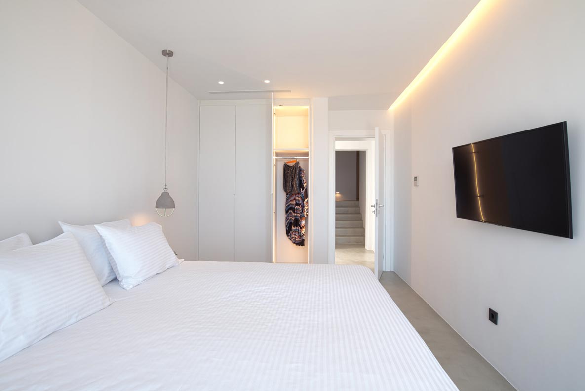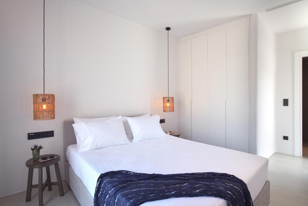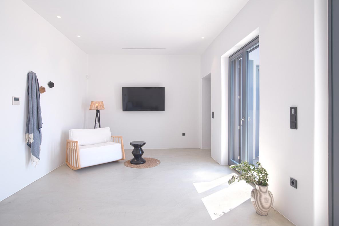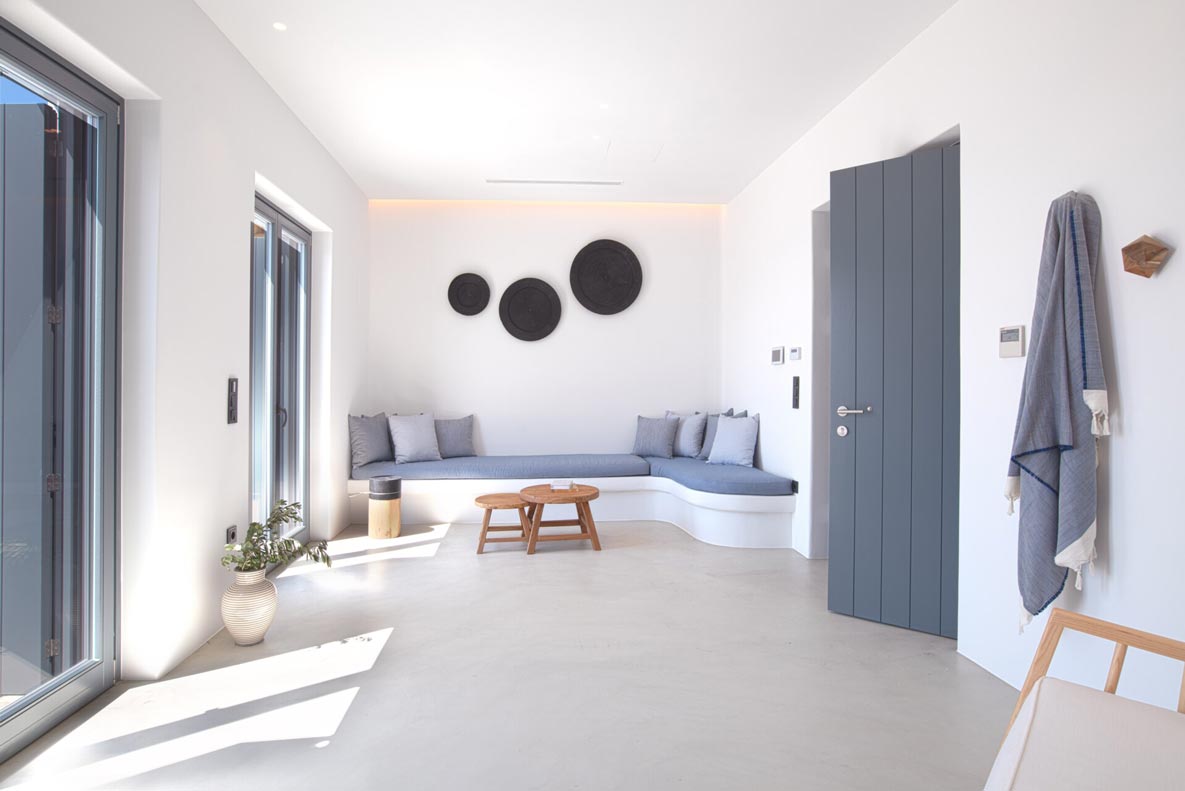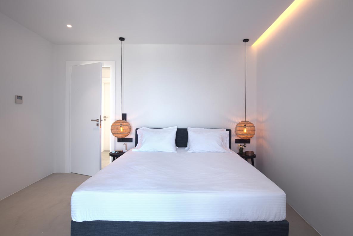 A stunning hillside villa graced with understated elegance: furnished in muted tones, warm woods, and local stone combine for a luxurious but relaxed ambiance. Breakfast in a pergola shaded lounge, indulge in fine dining on the expansive terraces, or float dreamily in your fabulous infinity pool where a cerulean sky invisibly joins the sea. Or perhaps watch Venus rise at sunset while toasting yet another Greek island magical day. Spellbinding, minimalist, über cool, living and sleeping areas overlooking the sun-drenched landscape of Mykonos. This Villa offers complete privacy and seclusion in luxurious comfort for up to 8 guests.