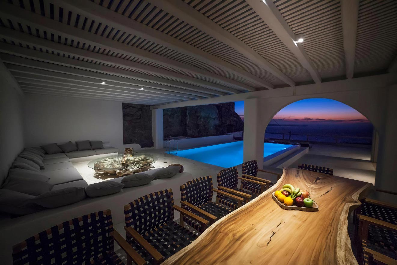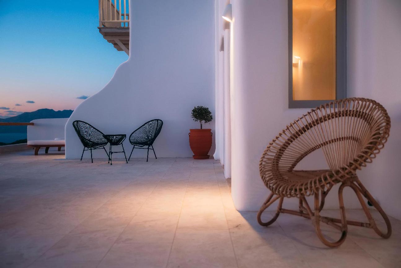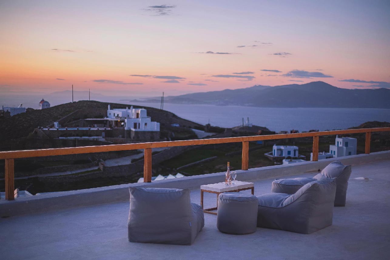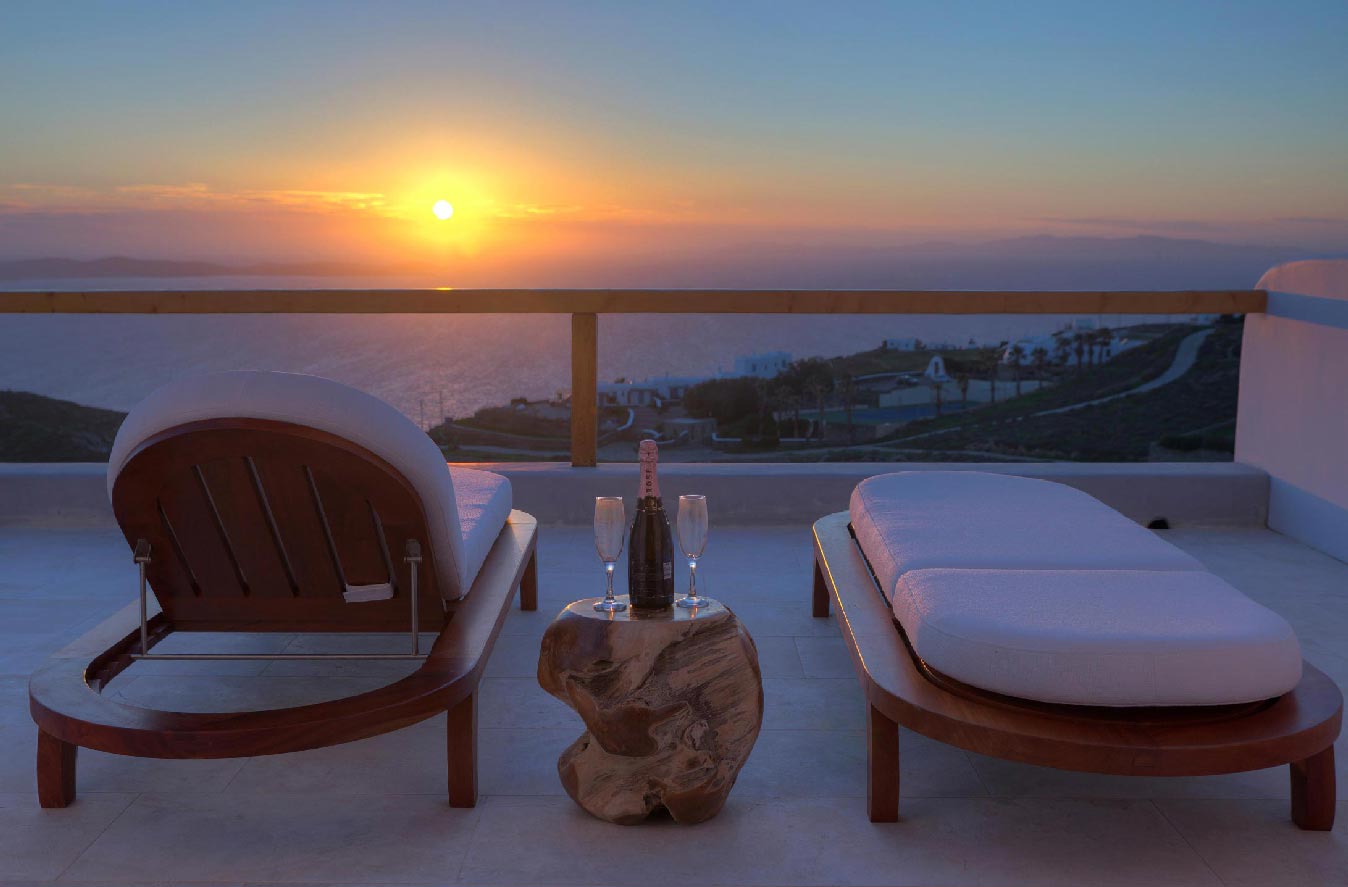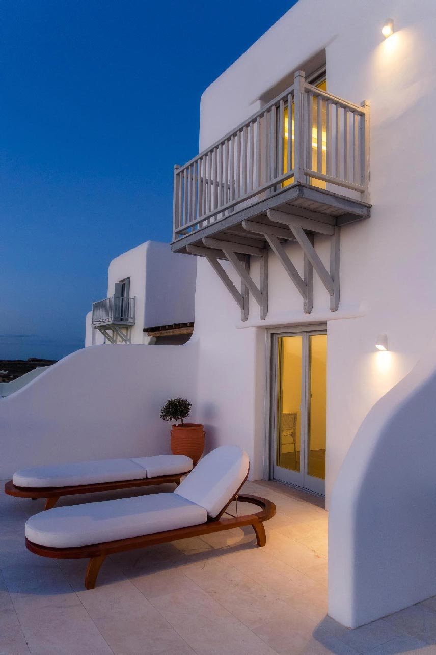 A 2 level luxurious villa, part of a glorious complex of Villas and Suites. Located at the highest point of the complex, with views that range from the island of Tinos to the island of Delos.