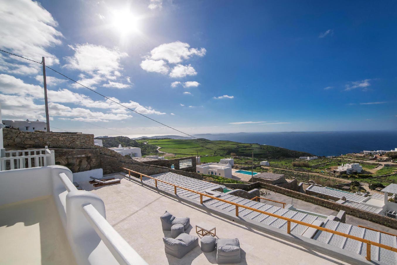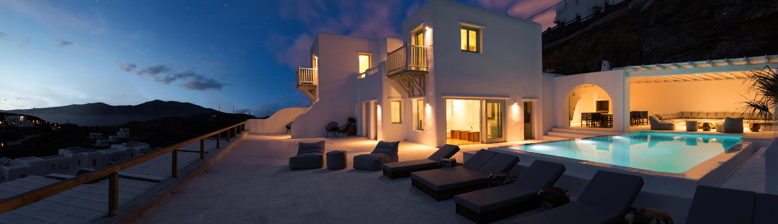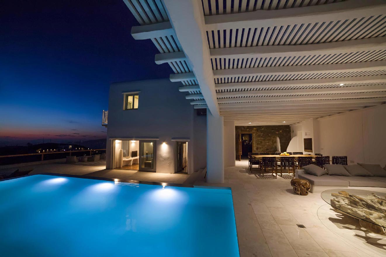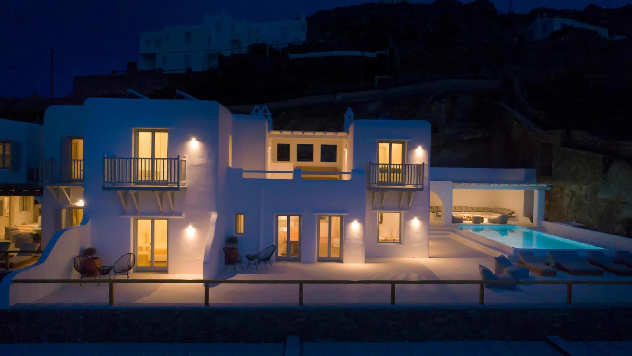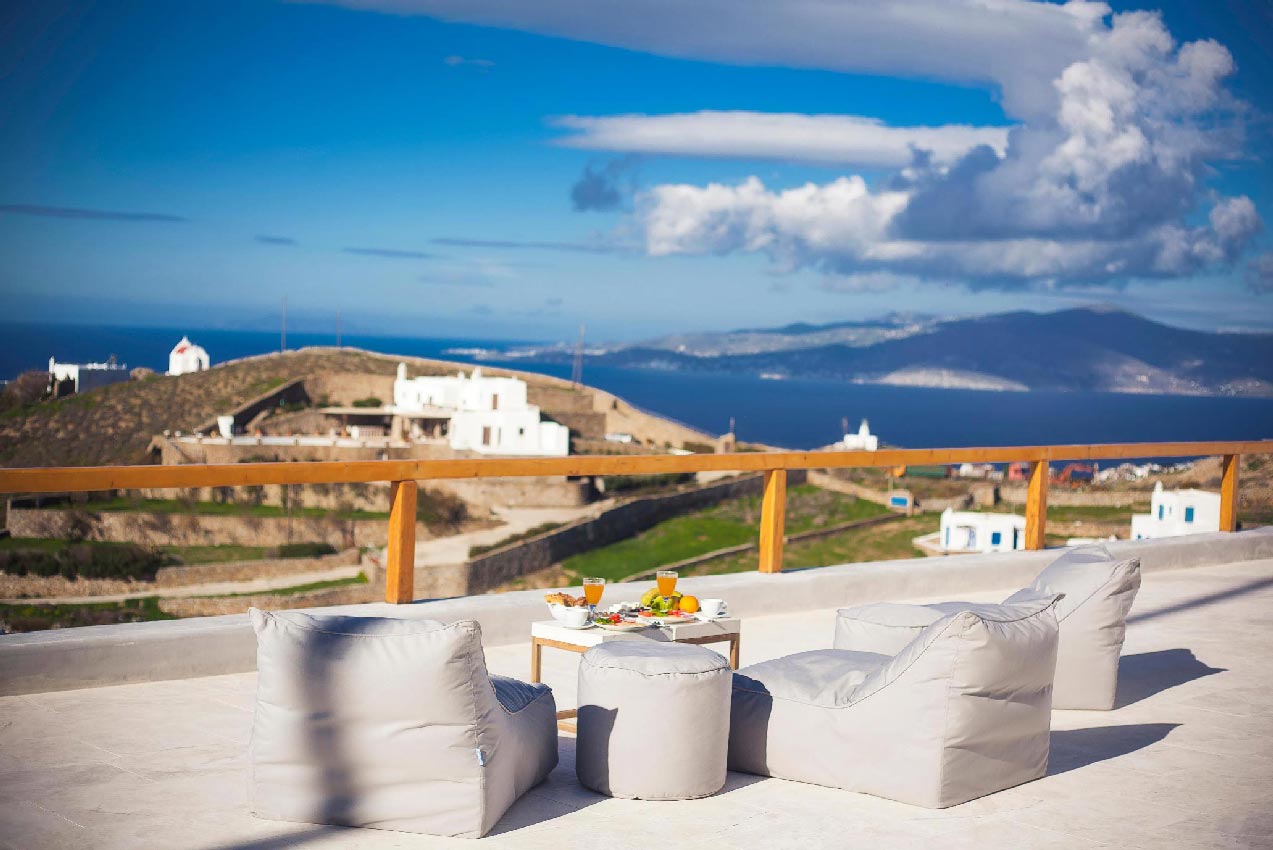 A 2 level luxurious villa, part of a glorious complex of Villas and Suites. Located at the highest point of the complex, with views that range from the island of Tinos to the island of Delos.