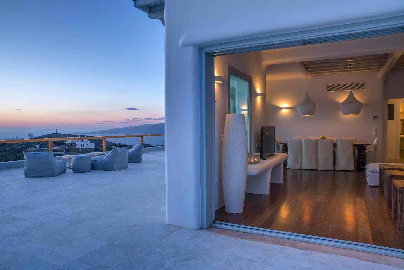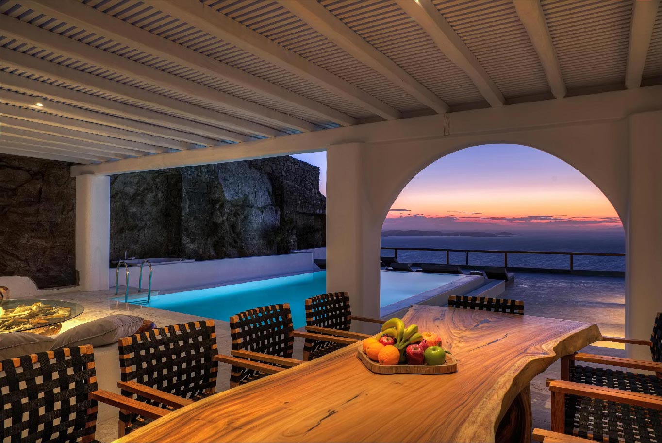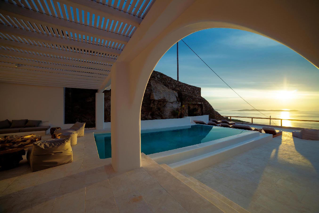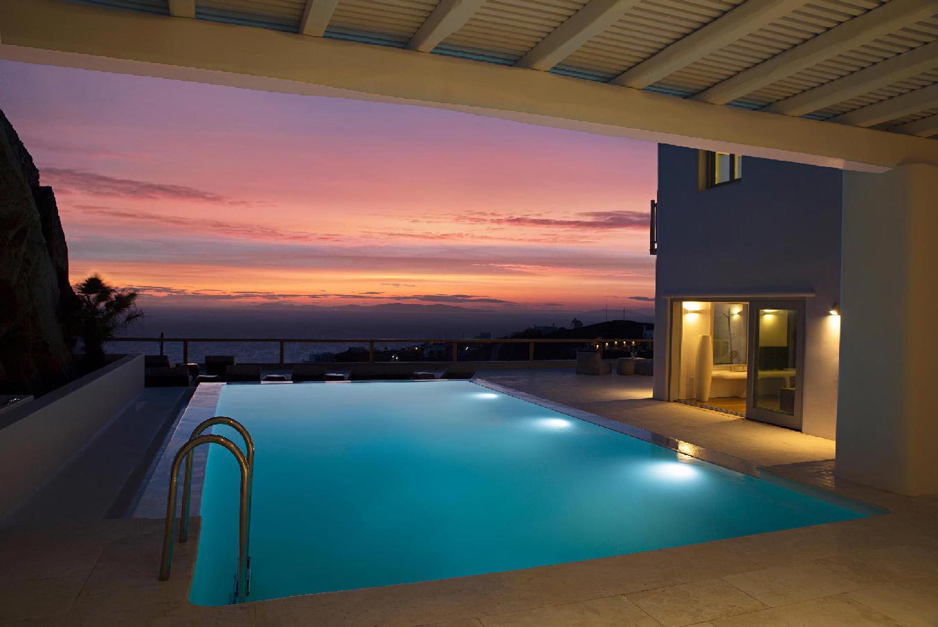A 2 level luxurious villa, part of a glorious complex of Villas and Suites. Located at the highest point of the complex, with views that range from the island of Tinos to the island of Delos.