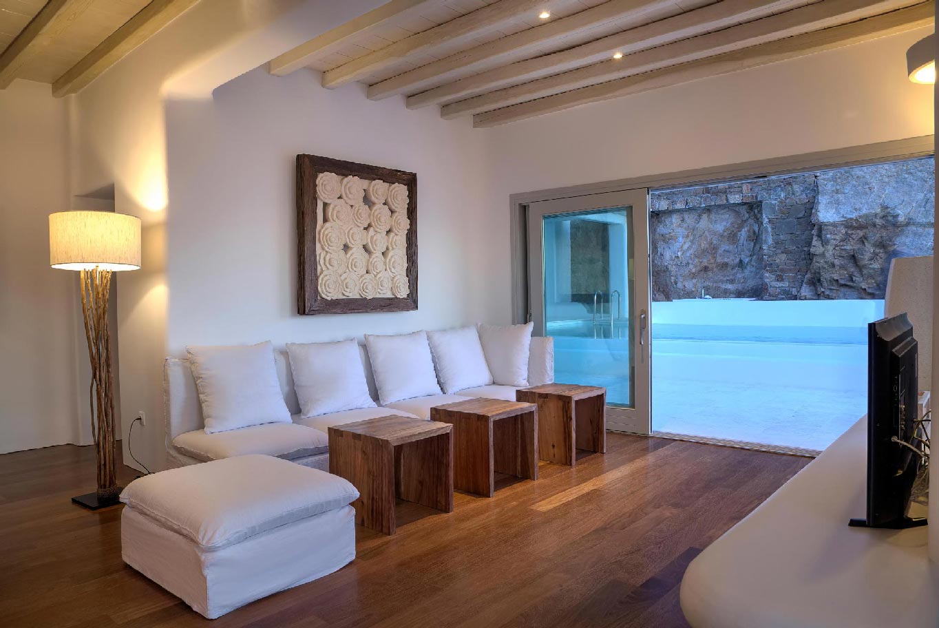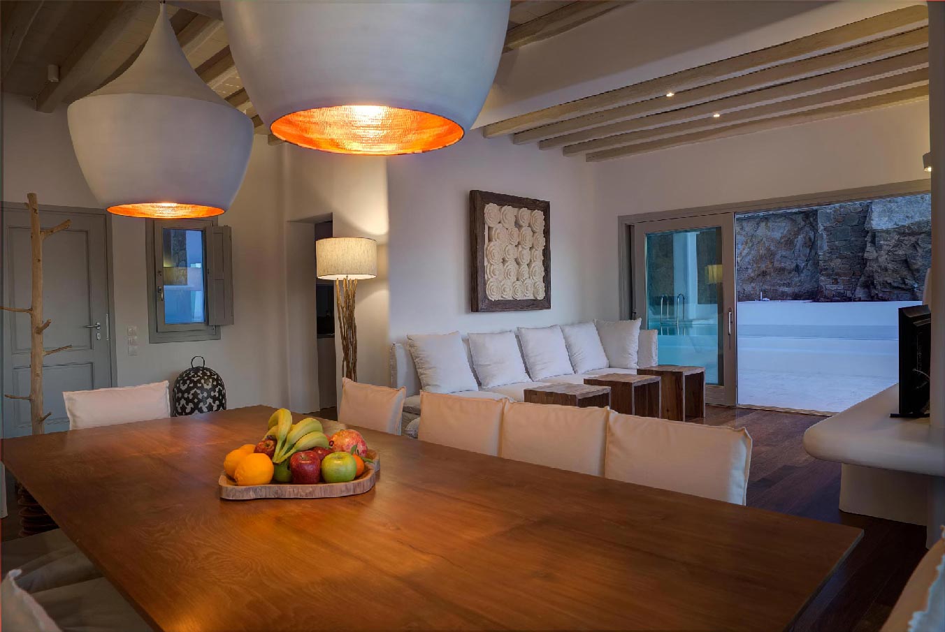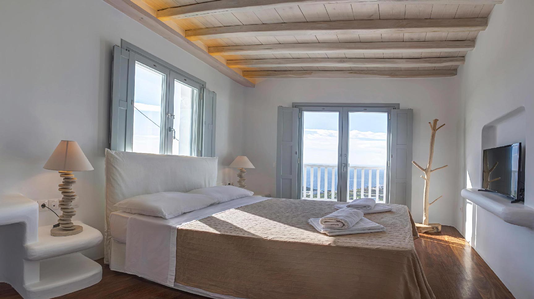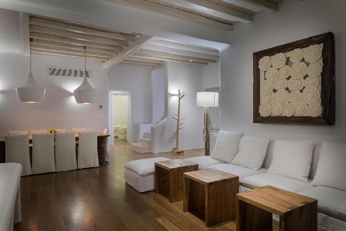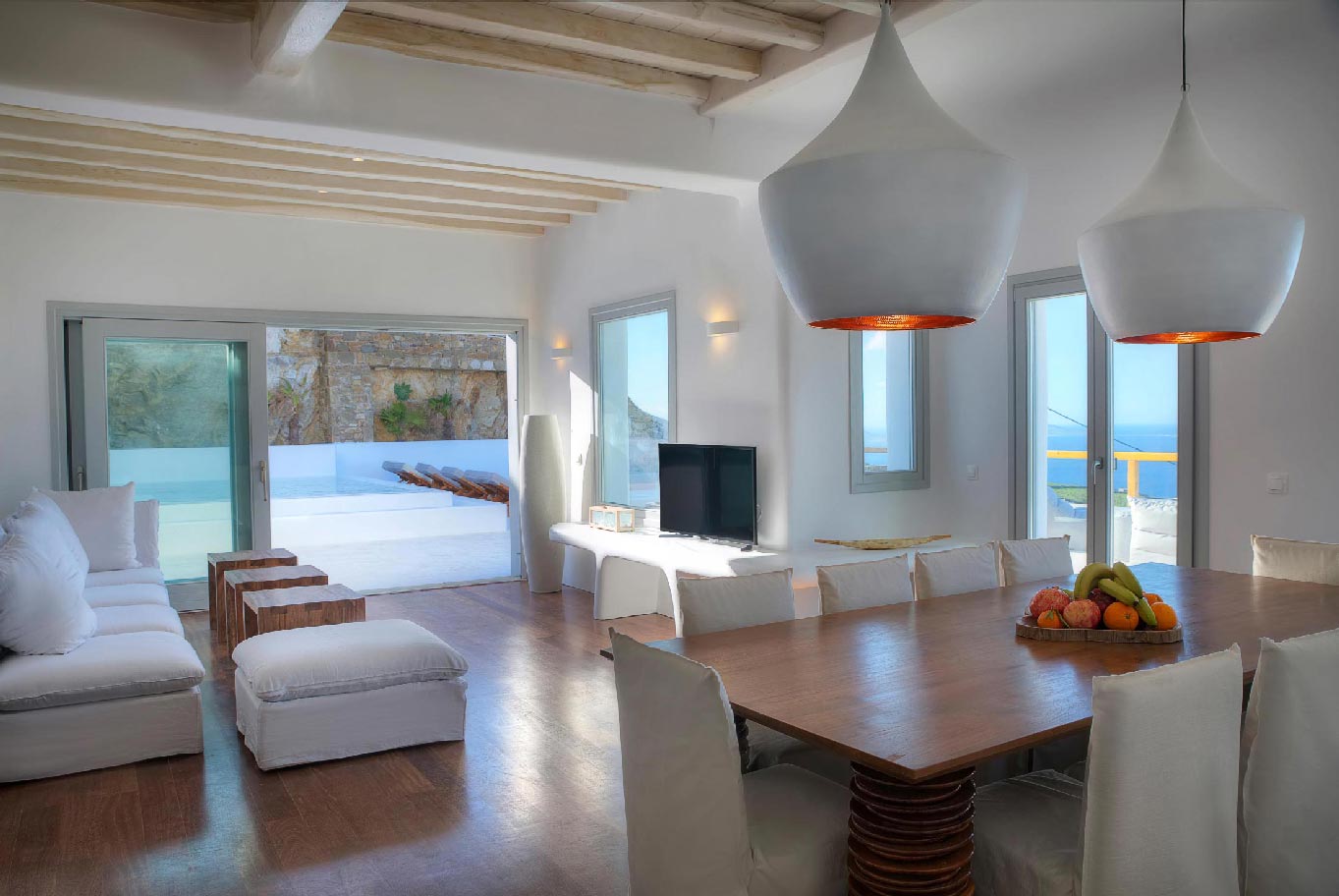 A 2 level luxurious villa, part of a glorious complex of Villas and Suites. Located at the highest point of the complex, with views that range from the island of Tinos to the island of Delos.