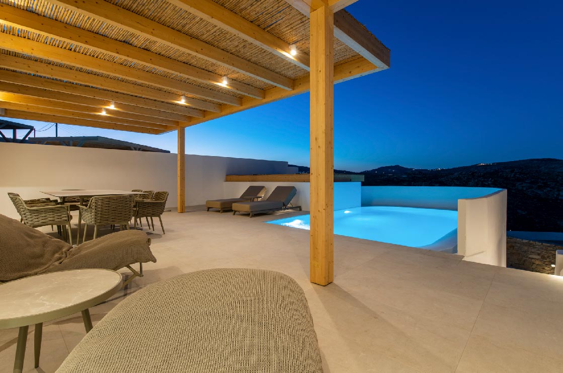 This new built villa offers a modern take on Cycladic hospitality, combining contemporary design with traditional warmth. Crafted with attention to detail, this villa provides guests with a luxurious retreat that blends comfort and aesthetics.