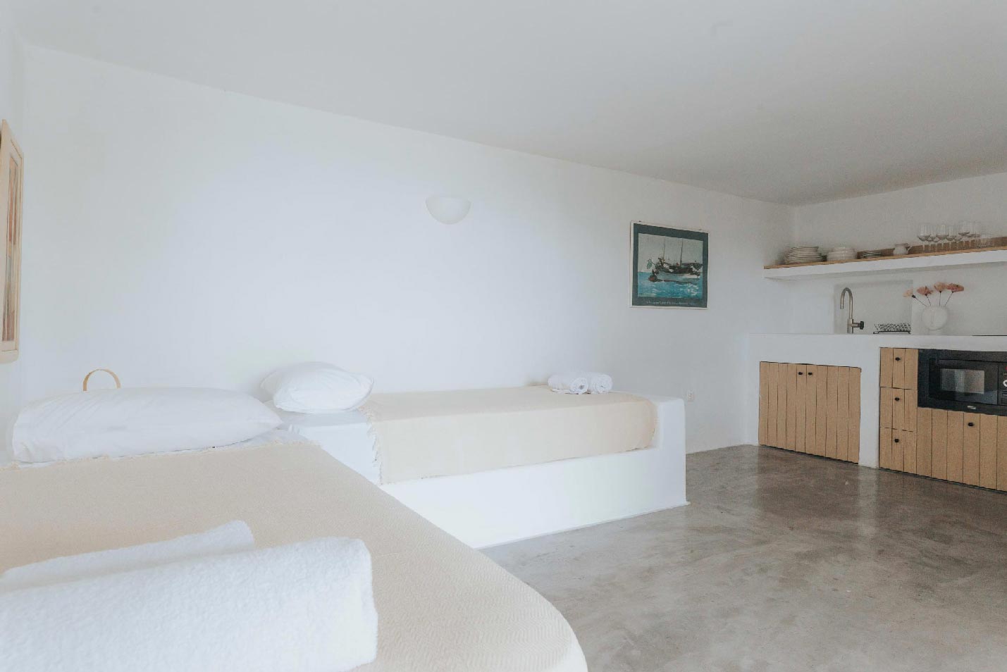 1 x Double Bedroom with queen size bed connected with a double bedroom with two single beds with kitchenette, balcony, and independent access