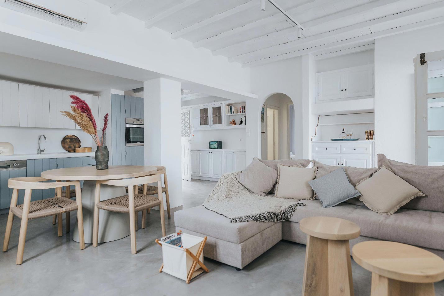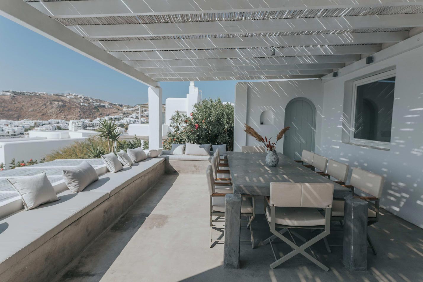 Villa Solene epitomizes an exquisite estate that offers an idyllic backdrop forv a leisurely summer living experience, making it the quintessential choice for groups of friends and families in search of respite from the demands of contemporary existence. Situated in a privileged location a mere 30 meters from the shoreline, the villa affords panoramic vistas of the Aegean Sea. Meticulously designed to bestow opulence and convenience, it is equipped with a comprehensive array of contemporary amenities befitting a luxury vacation residence.