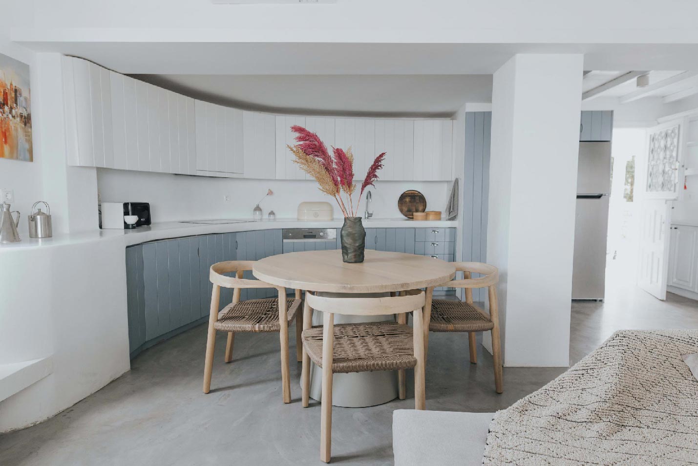 Open plan fully equipped kitchen with dining area