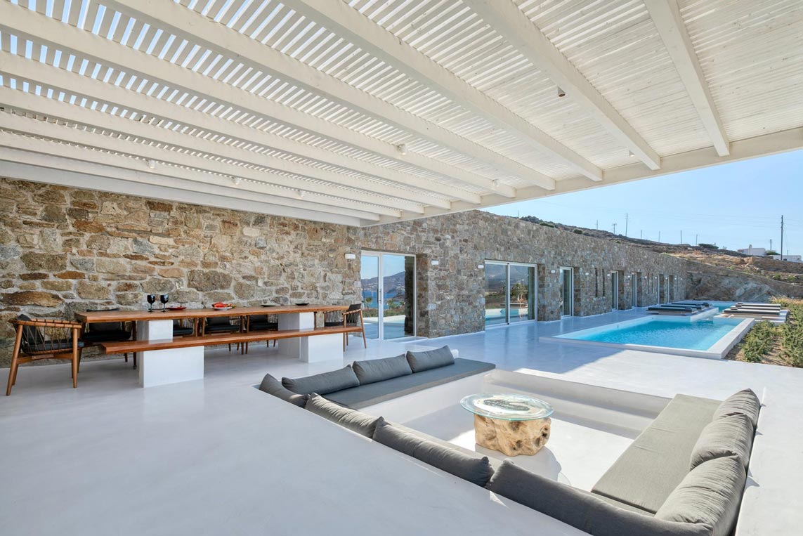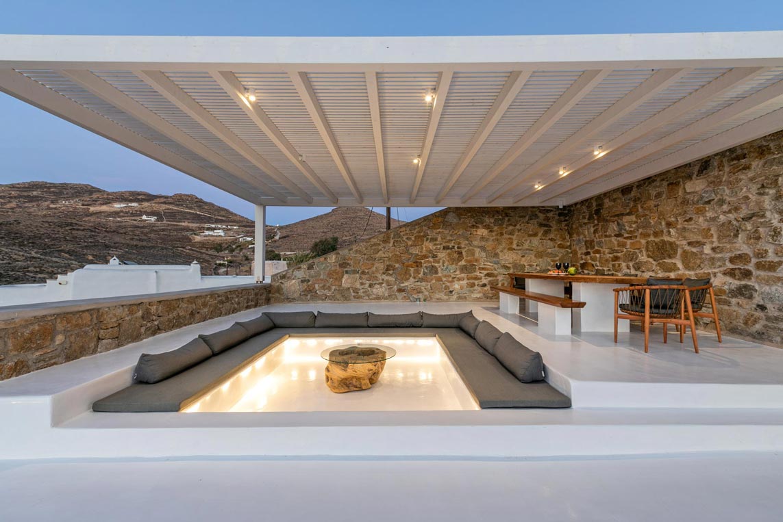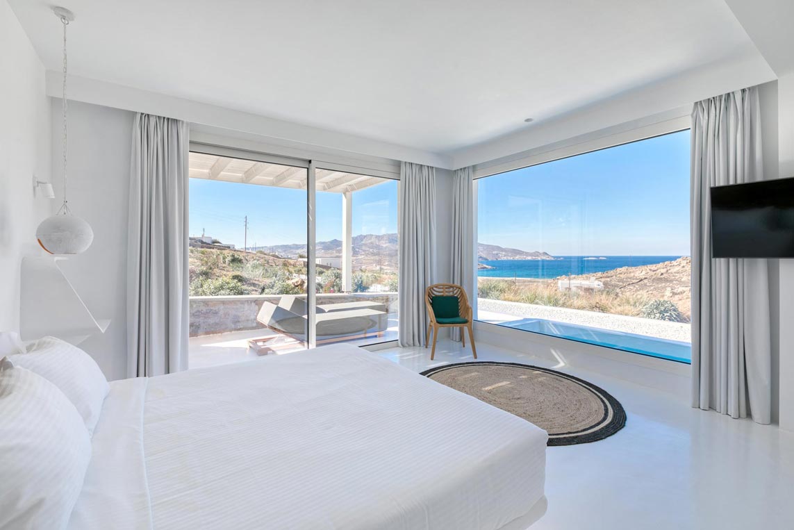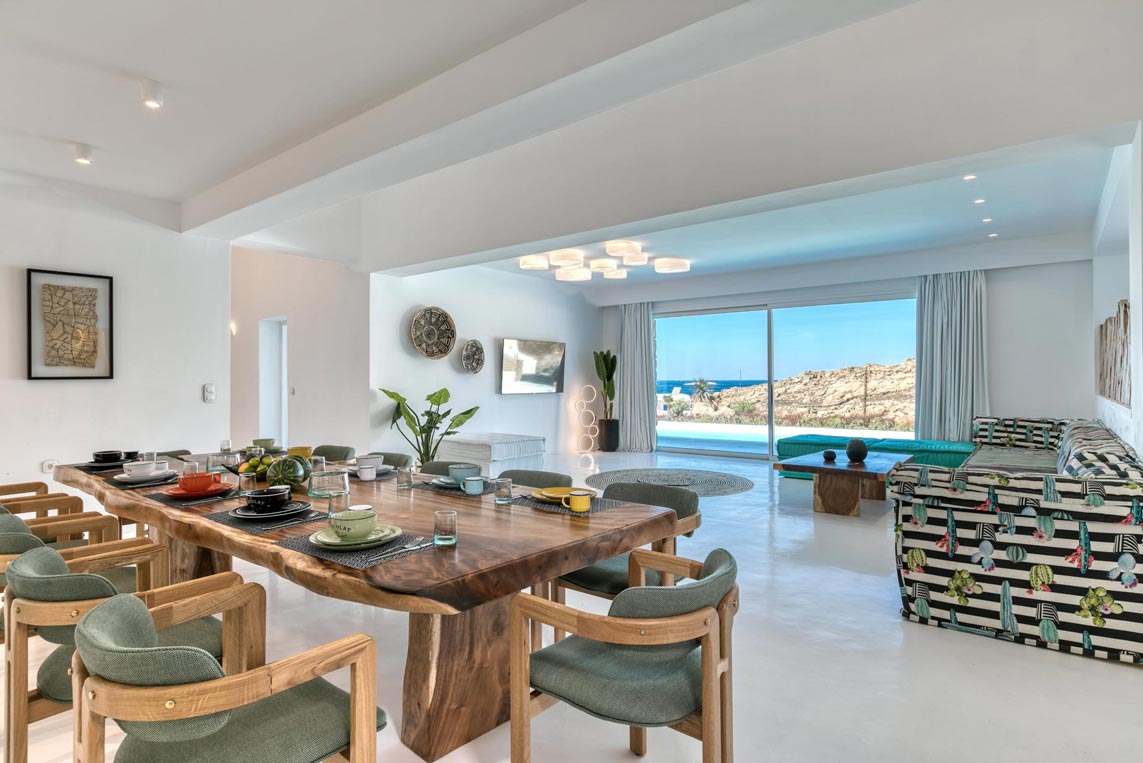 Villa Sun in Mykonos is a luxurious property that guarantee the vacation of a lifetime for up to 12 deluxe travellers on each villa, offering unique Aegean Sea views, inimitable style, privacy and top home comforts combining art and ultimate design.