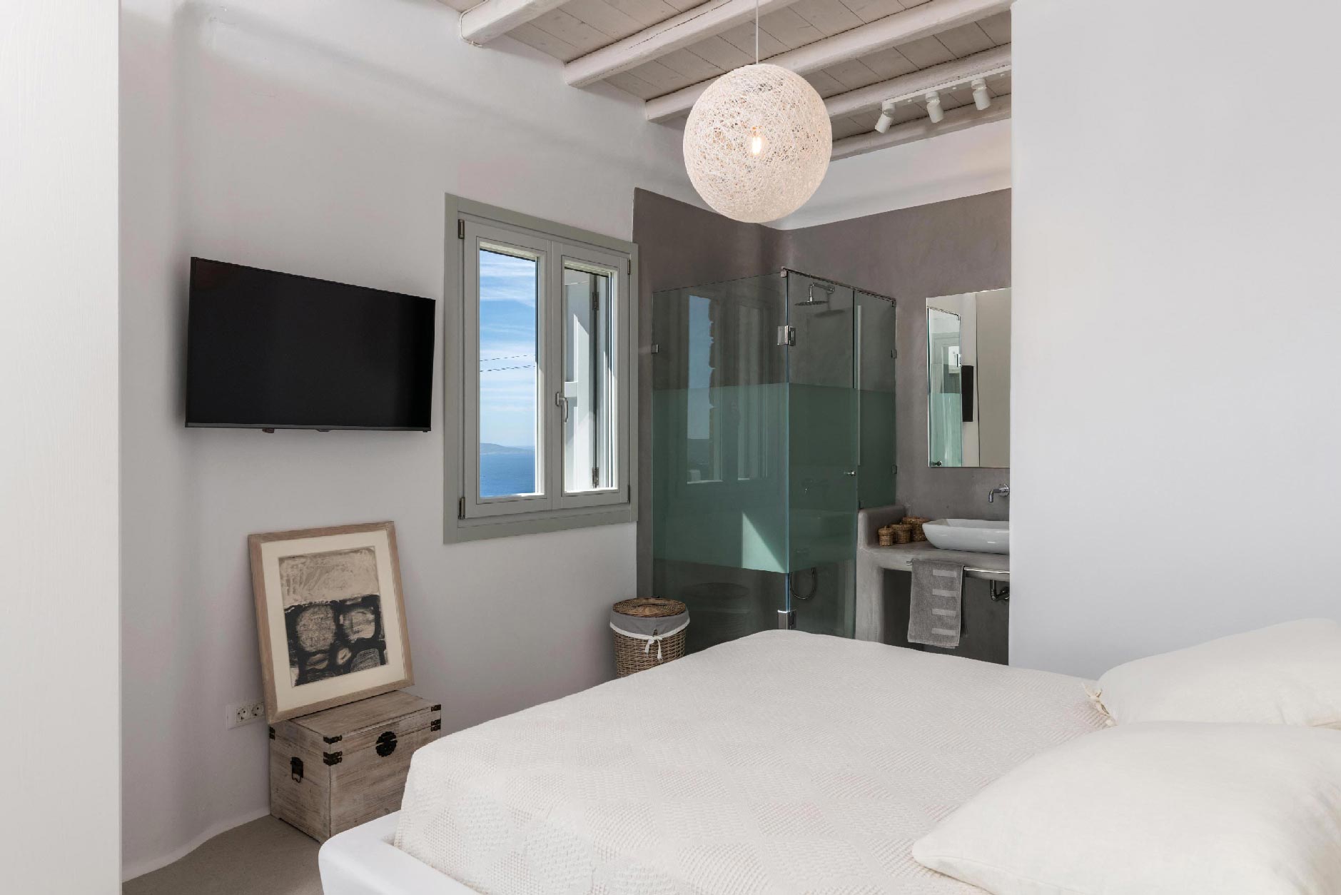 1 Master Bedroom with double bed, en-suite bathroom with shower, sea view